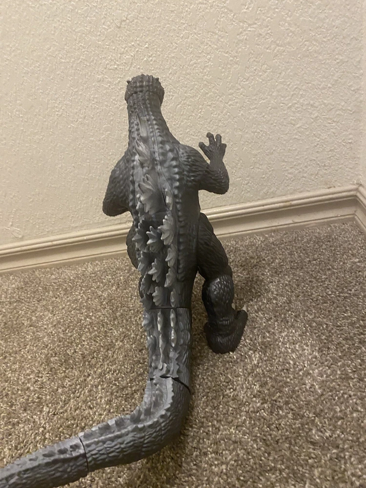 This used Godzilla action figure from the Monsterverse collection by Playmates is a must-have addition to any fan's collection. With orange eyes and intricate detailing, this toy captures the essence of the iconic monster. It is made for display purposes only and is not meant for children under 14 years of age.