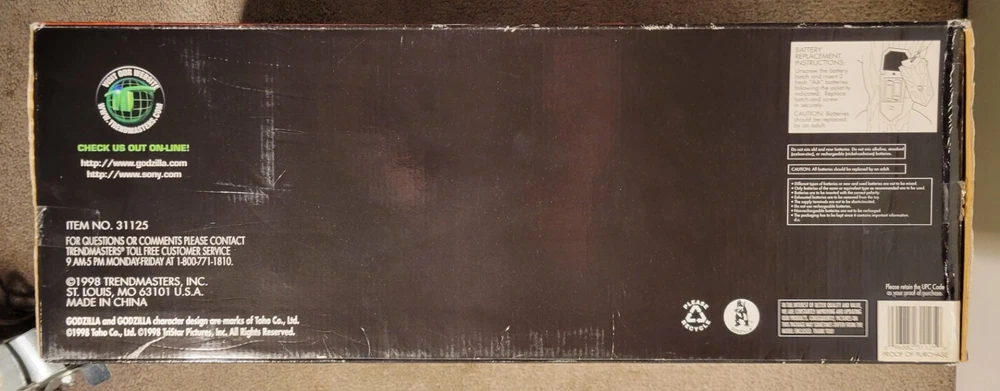 Massive. Gigantic. Huge. These are all words that one can use when describing the obnoxiously large Ultimate Godzilla figure. Rumor has it that only 50,000 of these massive figures were produced, and with that said, I am now ashamed to have ever taken it out of its box. This figure could very well be worth a pretty penny in the coming decades. Even if that rumor holds false, it still wouldn't come as any surprise to see this grow in value. Despite what one feels about the monster or its movie, this particular release, if one ever gets a chance to, deserves to be drawn into anyone's collection. It is very heavy figure. It will need TWO shipping boxes one for the figure and one for the original box. Original box is complete, with all the compartments boxes and plastic bags. FIGURE WAS NEVER PLAYED WITH. ONLY WAS DISPLAYED FOR A WHILE. THE ELECTRONICS WORK, MAGNIFICENT ROAR.... ANY QUESTIONS PLEASE LET ME KNOW ASAP. THE SHIPPING POSTED HERE IS FOR THE FIGURE AND THE BOX THAT IS HAS TO BE MAILED SEPARATELY. THE ORIGINAL BOX WOULD BE: 25x16x12