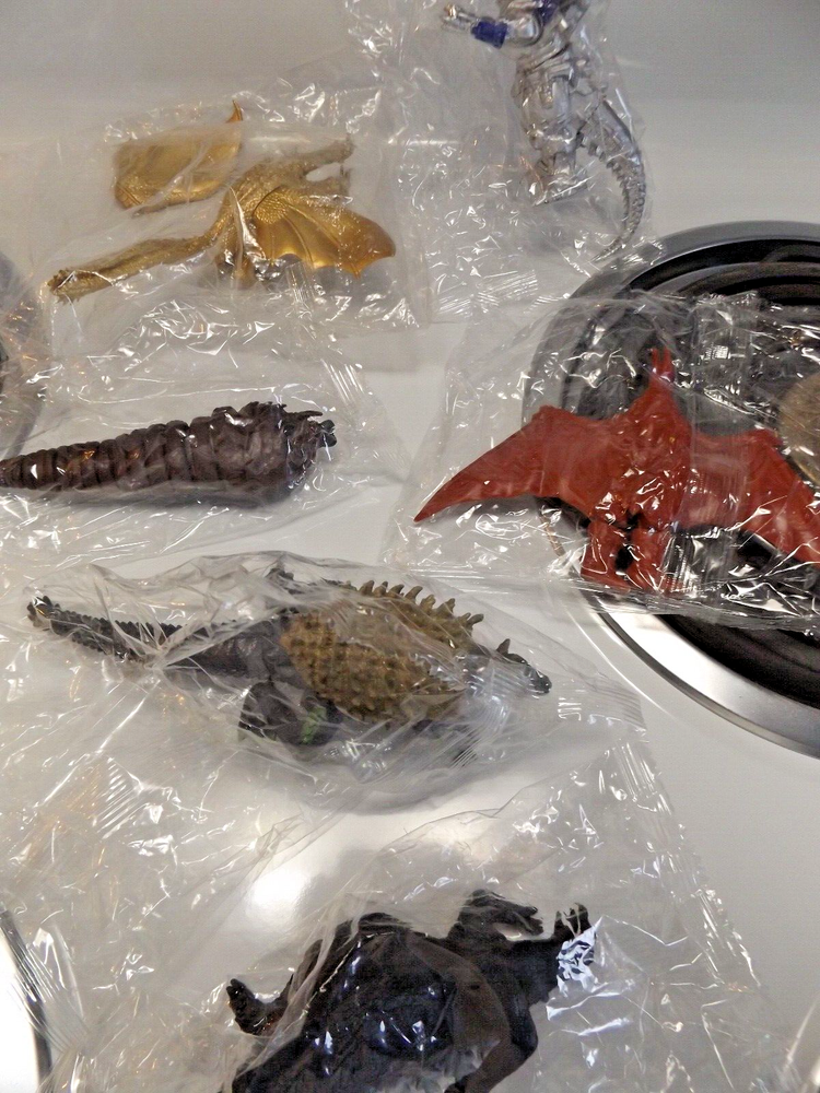 I HAVE NO IDEA WHO THESE WERE MADE BY BUT THERE IS A GROUP OF 7 AND THEY ARE ALL STILL SEALED IN THEIR ORIGINAL BAGS SO THEY ARE IN EXCELLENT CONDITION AS YOU CAN SEE FROM THE PHOTOS. TWO COLORED DINOSAURS OF THE SAME SCALE WERE FOUND WITH THEM SO THEY ARE BEING SENT AS WELL. THERE ARE 7 FIGURES FROM THE GODZILLA MOVIES + THE TWO DINOS IN THE LAST PHOTO. MOTHRA HAS AN AUXILIARY SET OF LEGS IN THE BAG THAT LOOK LIKE ONE SET FOR LANDING AND THE OTHER FOR FLYING. GOLD FIGURE HAS A WUNG OFF BUT EASILY GOES RIGHT BACK ON. VERY INTERESTING GROUP OF GODZILLA FIGURES !!!!! FIGURES WILL BE WRAPPED CAREFULLY AND SHIPPED IN A STURDY BOX. PRICE REFLECTS $20/EACH BUT BEING SOLD AS A LOT ONLY !!!!! The items that I have been listing are part of an enormous basement clean-out that me and my son have been working on over the last Nine or Ten years. We have not yet scratched the surface but just continue to list the items that we can reach. We are by no means experts on these items but just enjoy putting them in the hands of collectors who appreciate them. The price shown for shipping is for the lower 48 continental United States. All other shipping destinations should check for a rate prior to bidding.