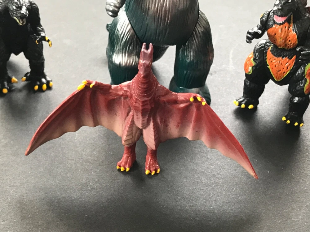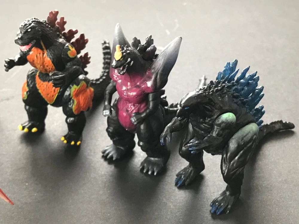 Lot of 8 Godzilla Action Figures 2 1/2 inches tall. The larger one is approximately 4 inches tall.
