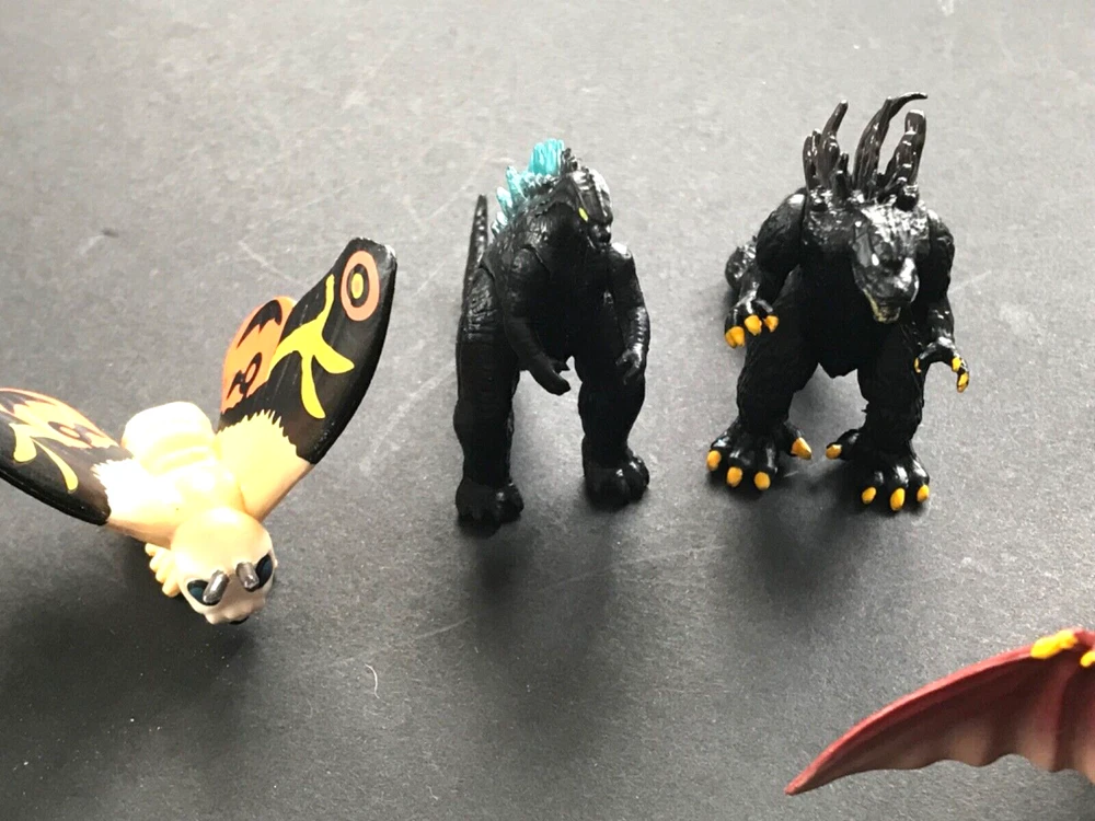 Lot of 8 Godzilla Action Figures 2 1/2 inches tall. The larger one is approximately 4 inches tall....