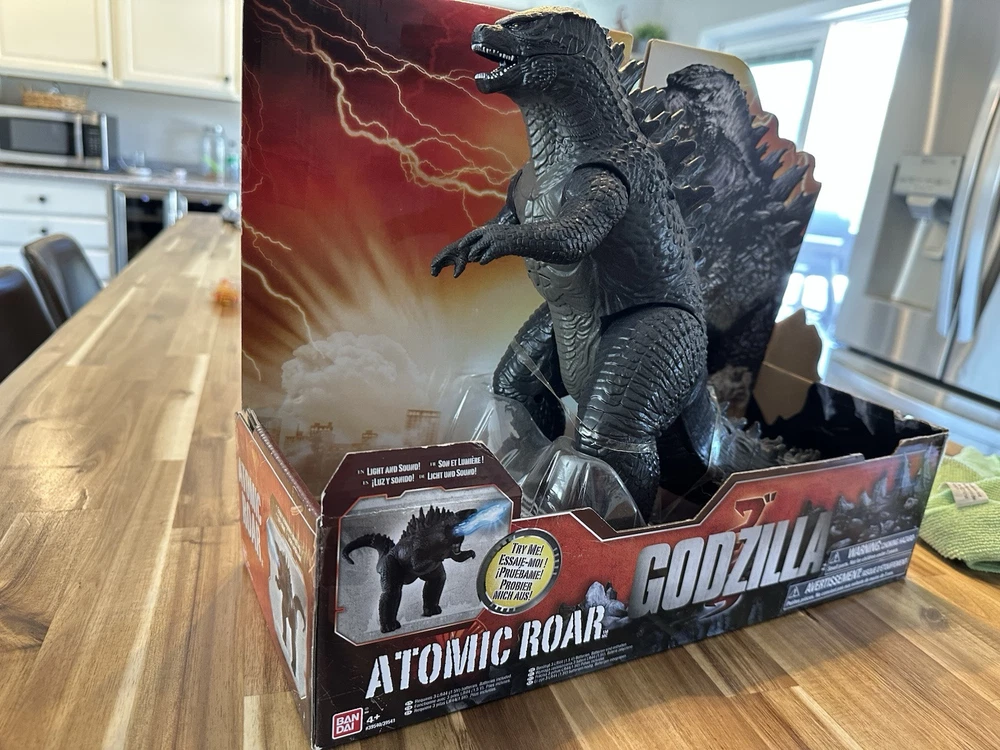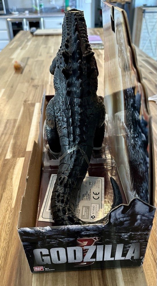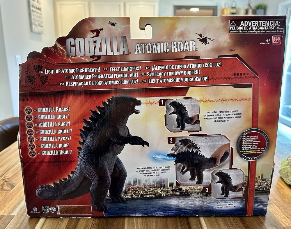 Immerse yourself in the world of classic monsters with the Bandai Godzilla Atomic Roar figure. Standing at an impressive 10.5 inches, this meticulously crafted creation is a must-have for collectors and fans alike, celebrating the iconic TOHO series. The figure comes from the year 2014, ensuring it's a relatively recent addition to any collection. Designed for enthusiasts ranging from 4 to 100 years old, this action-packed collectible captures the essence of the mythological beast. Reflecting the quality and attention to detail that Bandai is known for. Indulge in the nostalgia or start a new tradition with this stunning representation of Godzilla's atomic roar. The Atomic Roar Godzilla from Bandai Creation is a highly detailed action figure from the 2014 *Godzilla* movie. This rare collectible, now retired, brings Godzilla to life with its light-up atomic breath and authentic roaring sounds. **Features:** - Measures approximately 10 inches tall. - Includes an "Atomic Roar" gimmick: pull the tail upward to activate Godzilla’s iconic roar and release glowing atomic breath. - Manually reset the atomic breath by retracting it back into the mouth. - Arms can swivel for added posability. - Constructed from durable PVC material. - Comes in its original, unopened packaging. **Details:** - Released in 2014 as part of the *Godzilla* franchise merchandise. - Features authentic sounds and "atomic breath" action for realistic play or display. This large-scale Atomic Roar figure is a standout collectible for fans of the legendary monster. With its detailed sculpting and sound effects, it perfectly captures the essence of Godzilla from the 2014 movie. Don’t miss your chance to own this piece of *Godzilla* history! This item is new in the box and has never been removed.