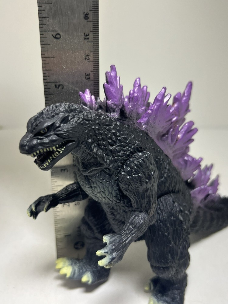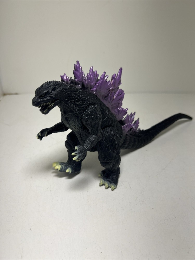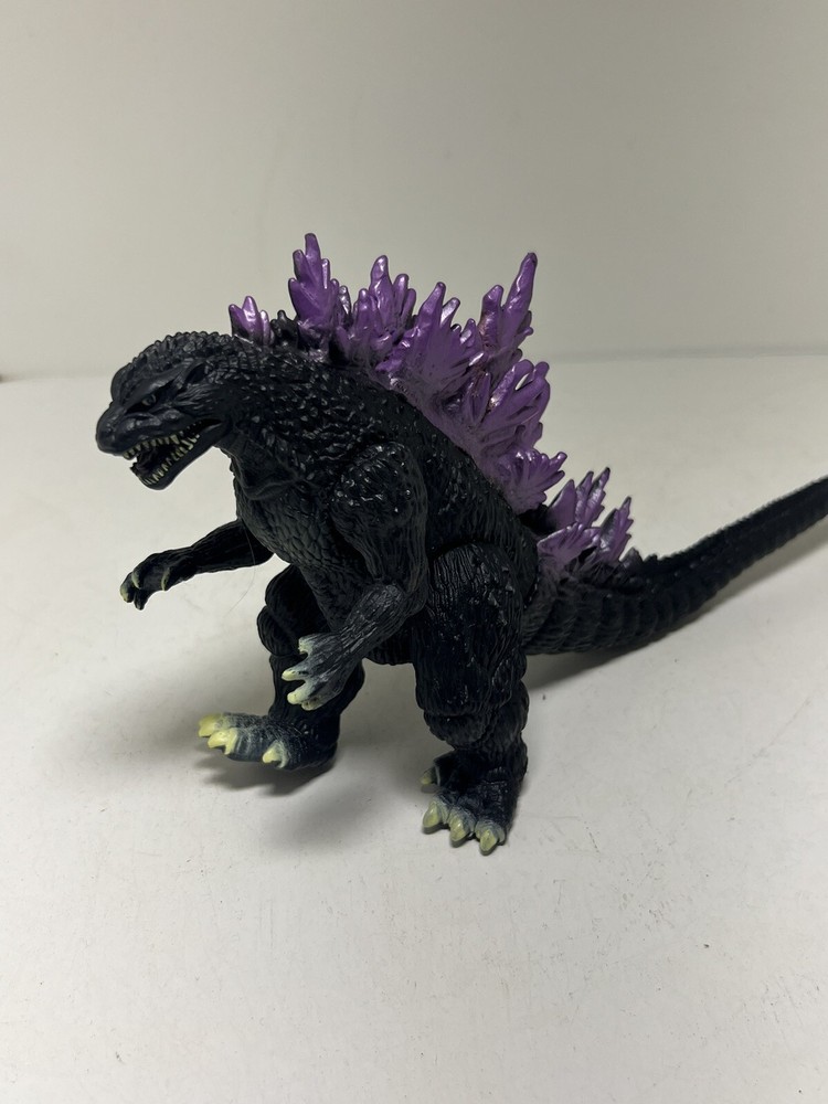 This Godzilla action figure from Bandai, released in 2001, features purple spikes and belongs to the Godzilla theme. It is a vintage item that can add value to any toy collection. The figure is in good working order and ready to be played with or displayed. Whether you are a Godzilla enthusiast or simply looking for a unique addition to your collection, this Bandai toy is an excellent choice.