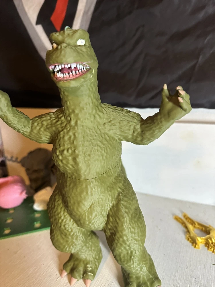I make these to order so it can take me possibly a week or more depending on how many orders I get at once. so sometimes i might be able to ship faster. if you have any questions message me this is only my first year doing this so I'm still learning the ends and outs. I try my best to make quality stuff for people so if there's a problem i dont mind refunding or replacing your order. I can ship quicker just message me and we can talk. I like to take my time to make you guys quality stuff. Unleash the power of the monster with this 10-inch tall Godzilla figure. The 3D printed design captures every detail of the iconic creature, from its scaly skin to its piercing eyes. With a glow in the dark feature, this figure is sure to be a hit in any collection. Perfect for fans of the Godzilla franchise, this figure is a must-have addition to any toy collection. Whether it's for display or play, this robot is built to last. So don't miss out on the opportunity to own this amazing piece of art.