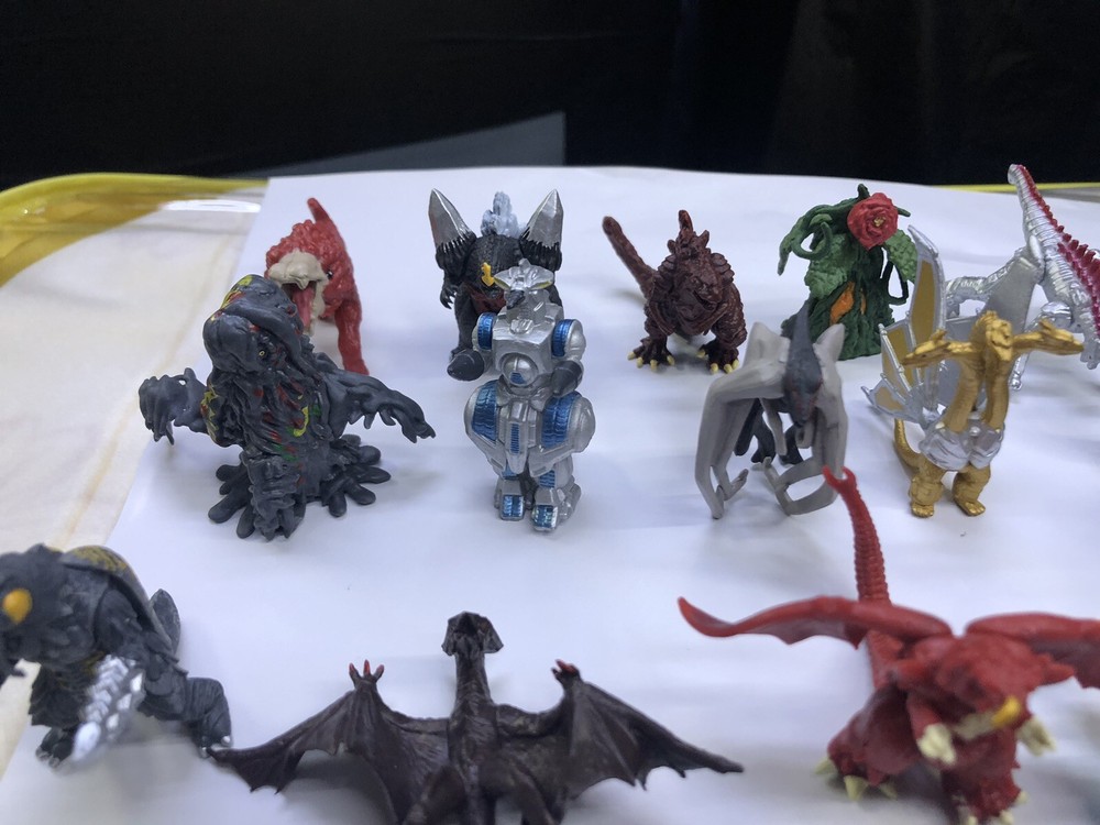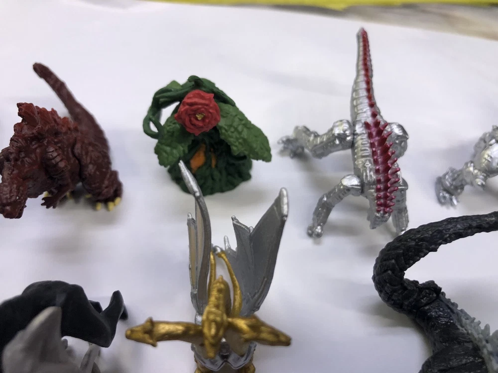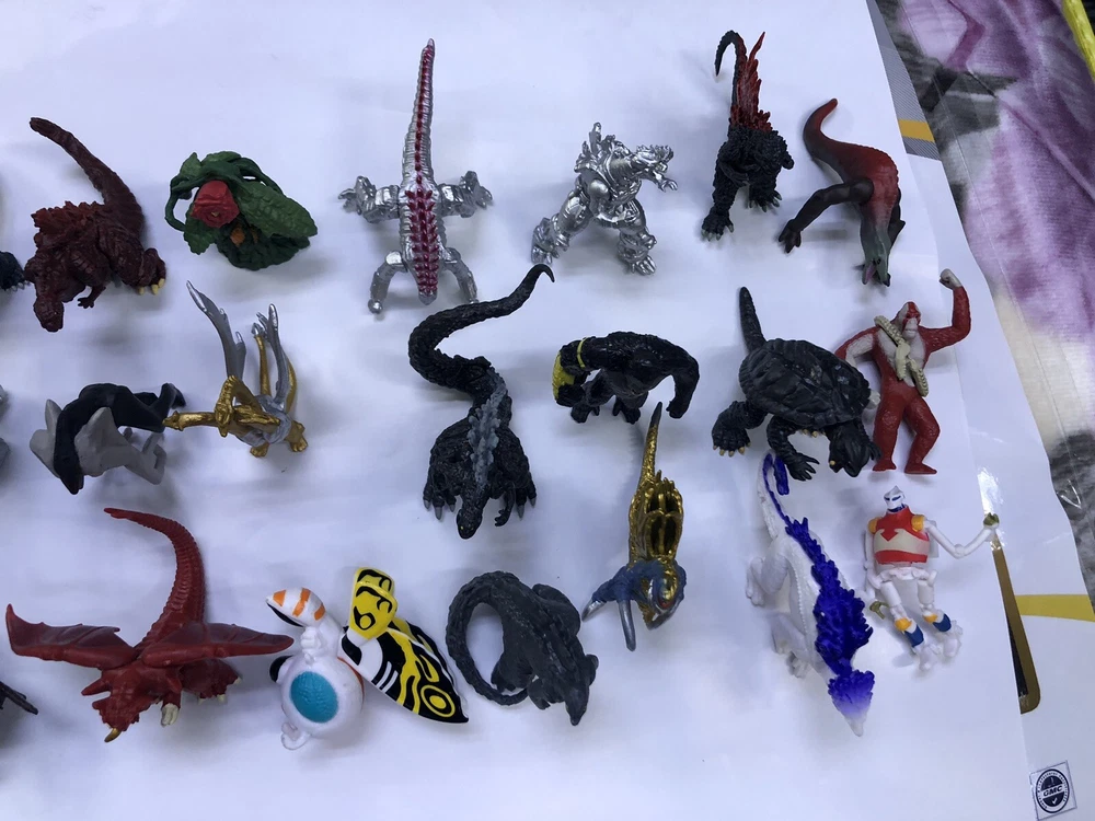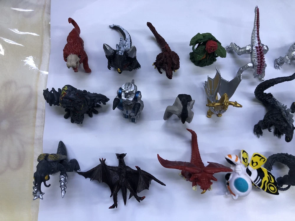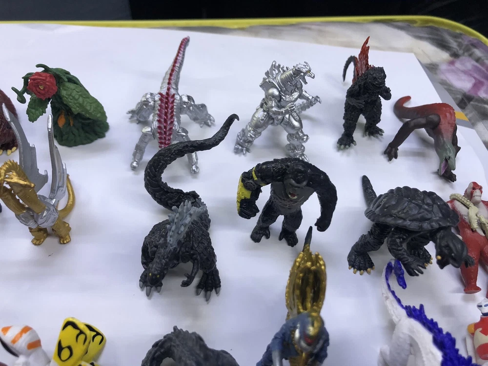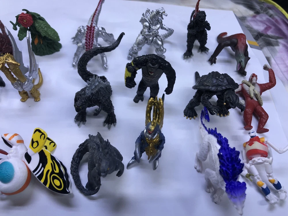 Up for sales are 24 pieces mini size Godzilla figures. Each of these are about 2.5 to 3 inches tall. These are Hong Kong version. Some does not stand so you might have to use double sided tape to place under their feet for them to stand. Some have minor flaws. All sales are final.