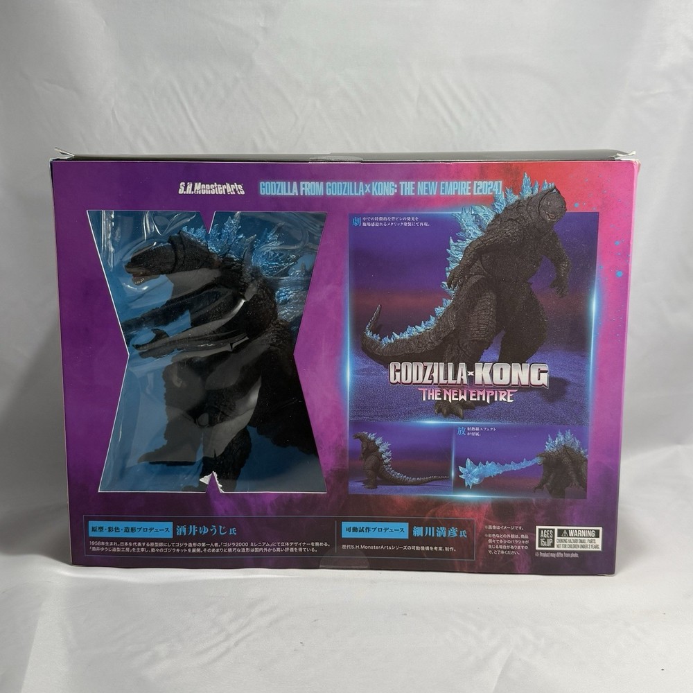 The product is an action figure of Godzilla from the Godzilla X Kong: The New Empire 2024 S.H.Monsterarts series by Tamashii Nations. This detailed figure captures the iconic character in a dynamic pose, ready for action-packed play or display. With its accurate representation of Godzilla and its association with the popular franchise, this collectible item is sure to be a must-have for fans and collectors alike.