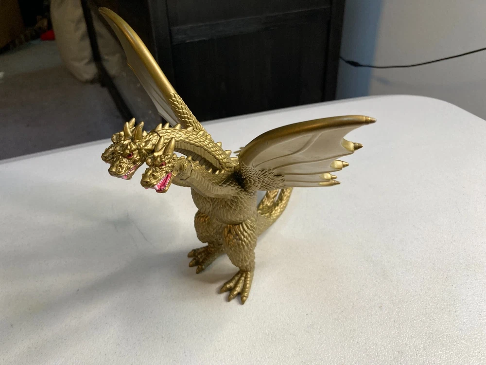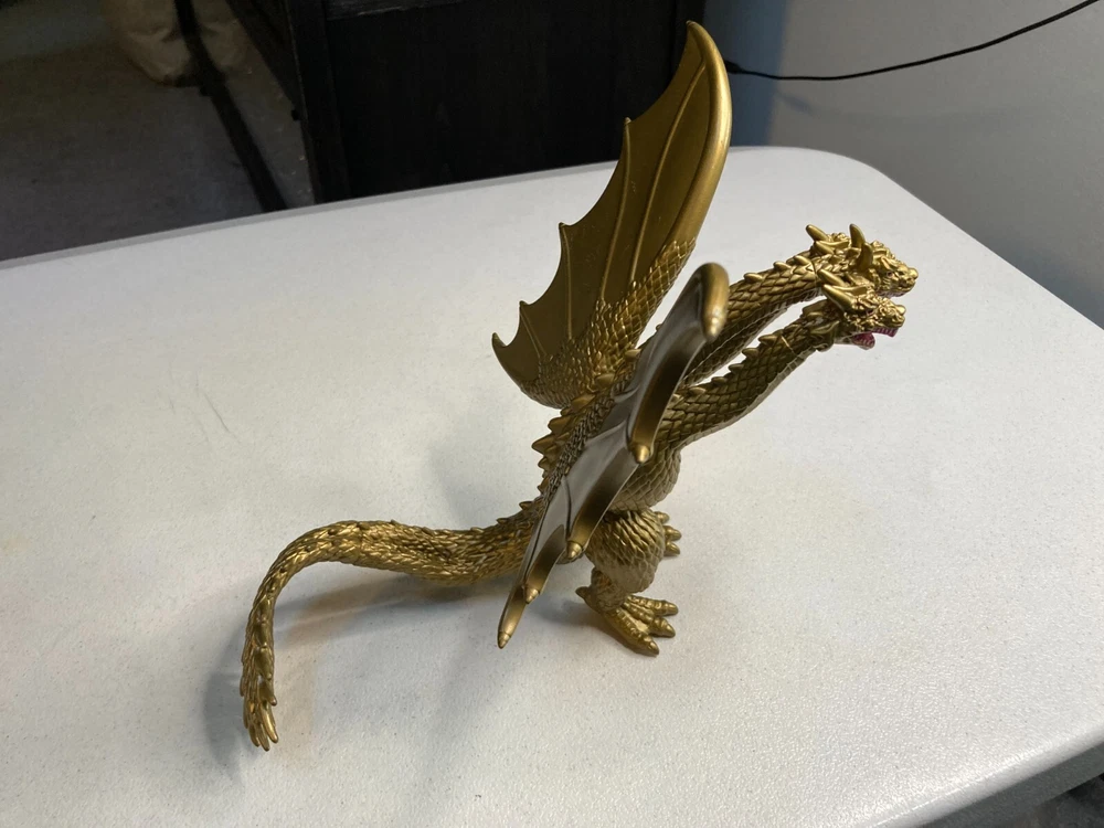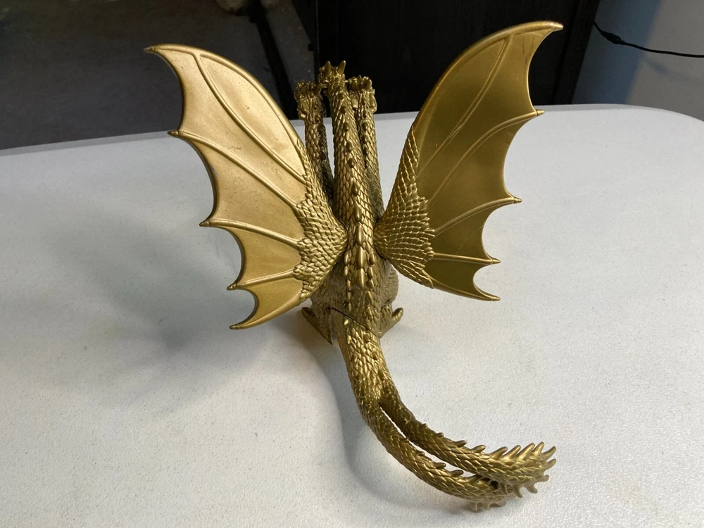 Godzilla Golden King Ghidorah Movie Monster Action Figure 2014 Toho Bandai. Figure is in good condition. There is some sticker residue on one of the wings. Shipping is USPS Ground Advantage.