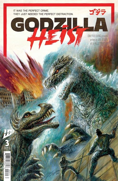Enter: Mechagodzilla! The greatest heist of all time requires the greatest piece of loot-the one man-made creation capable of going toe to toe with the King of the Monsters. Our crew is now inside the Ministry of Defense and moving farther and farther down into its mysterious underbelly. Outside, Godzilla's rampage continues unfettered, bearing its full might down on the Ministry... It all begs the question: What prize could possibly be worth the trouble? All that, and the greatest heist-story twist of all time inside the pages of Godzilla: Heist #3 !