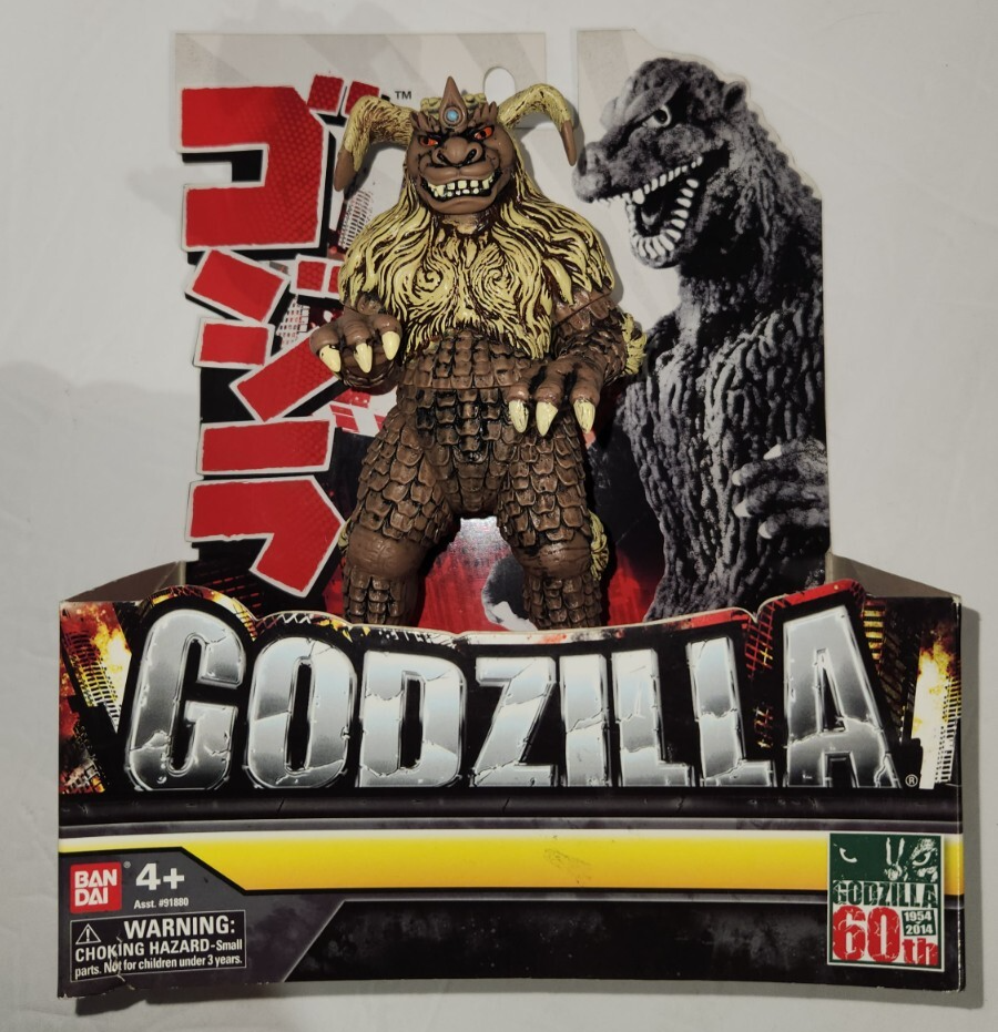 FROM: Retired Collectors' Basement Storage TO: Your Kaiju Display Case! _________________________________________________________________________ Bandai hand-painted King Caesar figure. Figure is NEW - See Pics of the actual Kaiju for sale. Box is in good shape except for one crease - SEE PICS! FREE SHIPPING! ________________________Product Description_________________________________ This King Caesar release is part of the Godzilla 60th Anniversary Series from Bandai Creation. In the beginning of 2014, Bandai Creation made a tenth wave that included a reissue of Godzilla 1954, Millennium Godzilla, Showa King Caesar, the 12" Godzilla 2004, the 12" Kiryu, and the mini figures. It featured a new box design celebrating Godzilla's 60th anniversary (1954-2014). The 60th Anniversary version of King Caesar or Kingu Shisa(the Japanese name) is based on the King Caesar suit worn in the 1974 movie titled ''Godzilla V Mechagodzilla''. King Caesar is a curious looking monster, looking much like a hybrid of several different creatures. His snout is dinosaur-like, with several teeth visible when it is open. He has red eyes, (bearing pupils in promotional images) and his ears are bent similar to a dog's. His upper half is covered in fur and has a kind of gold look to it, while his lower half has fur only on the legs and tail. The skin is brick-like with long claws. 6 inch figure Soft vinyl construction For ages 8+ Tenth Wave 60th anniversary figure