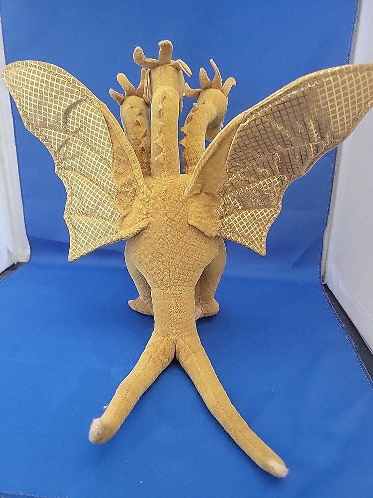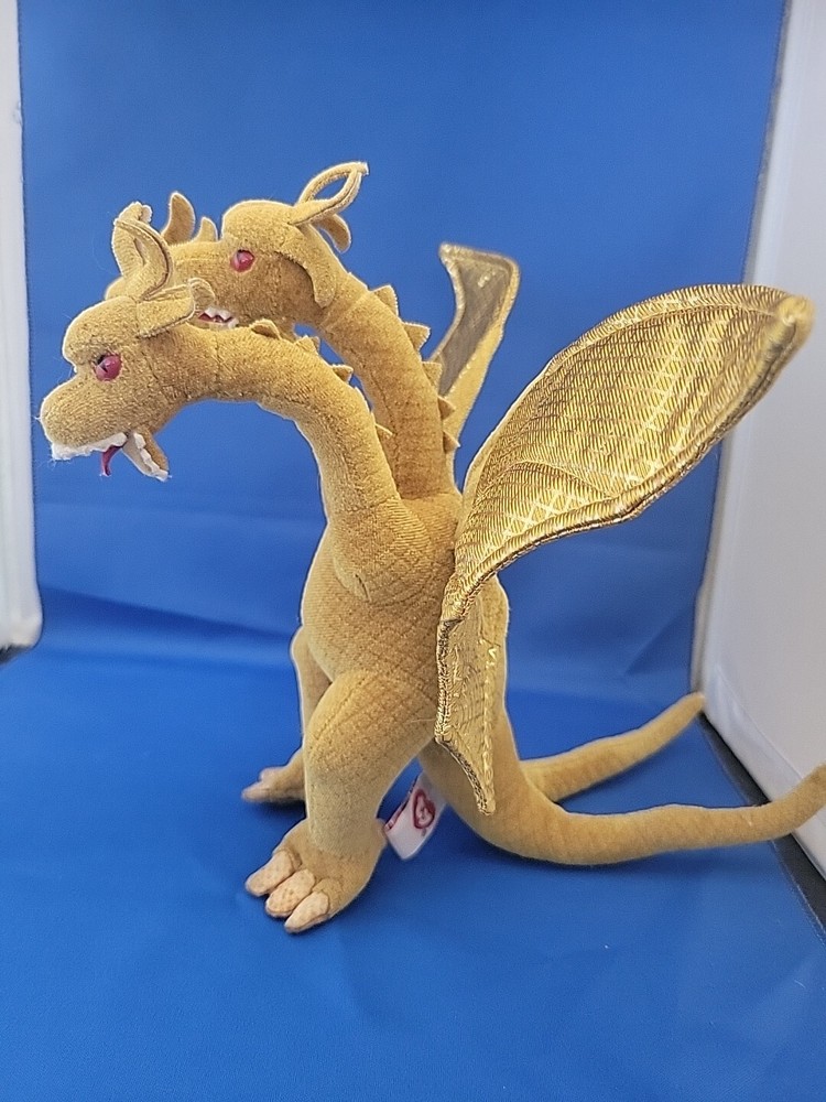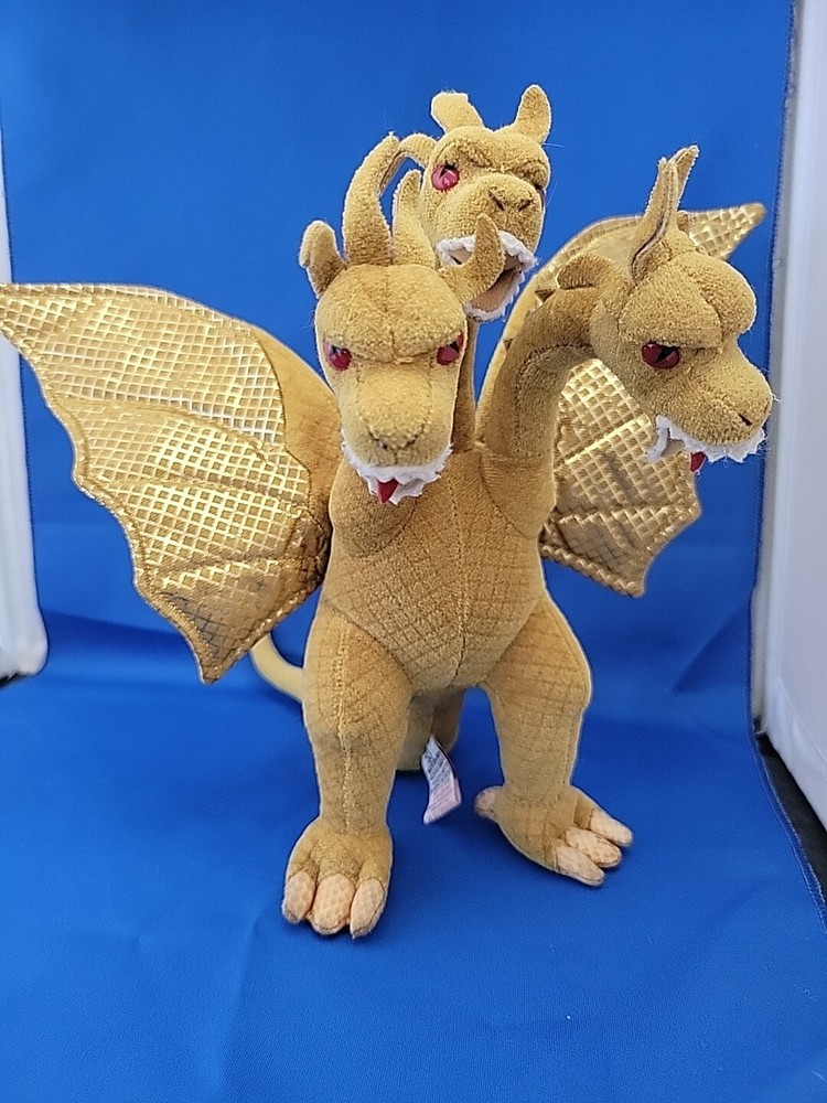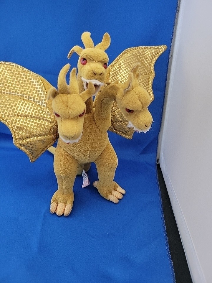This product is a TY Godzilla plush toy made in China in 2001. The plush features the three-headed dragon design of King Ghidorah and is recommended for children aged 3 and up. It is part of the Toys & Hobbies category and the specific subcategory of Robots, Monsters & Space Toys. The brand of the toy is TY and it was manufactured in Yokohama, Japan.