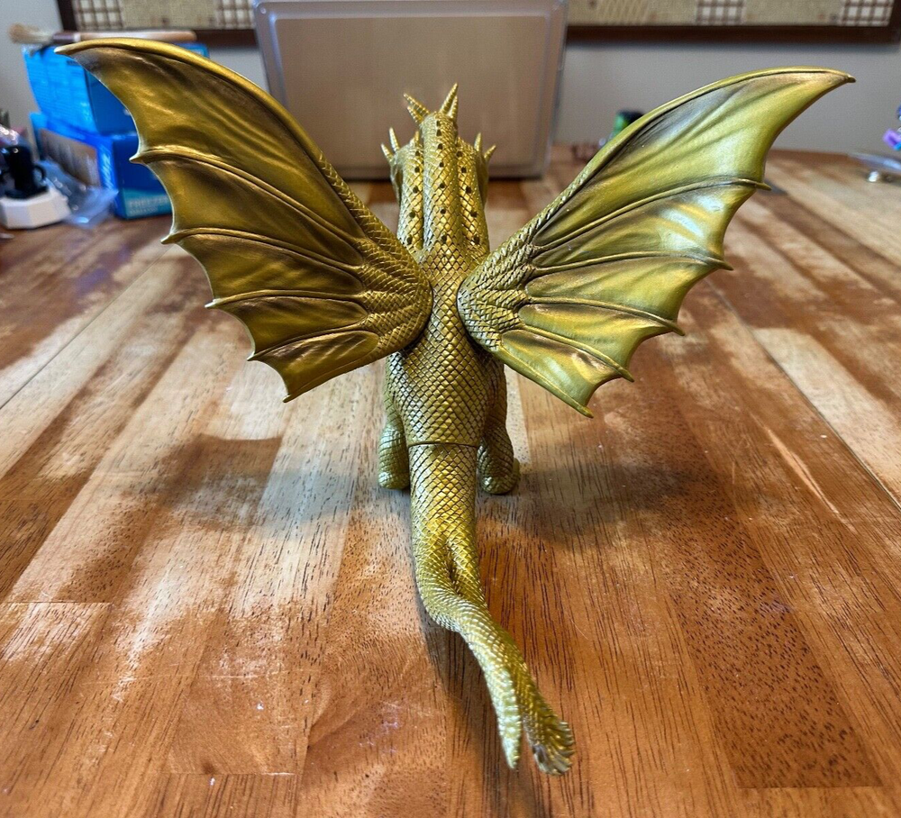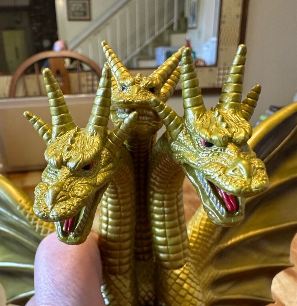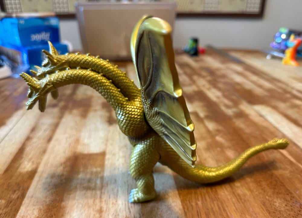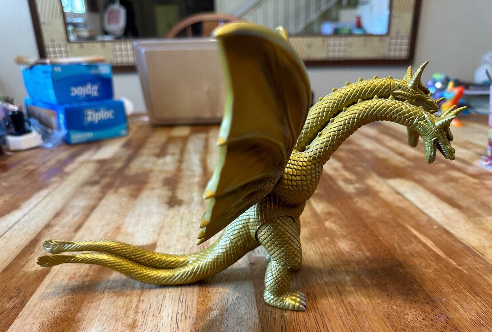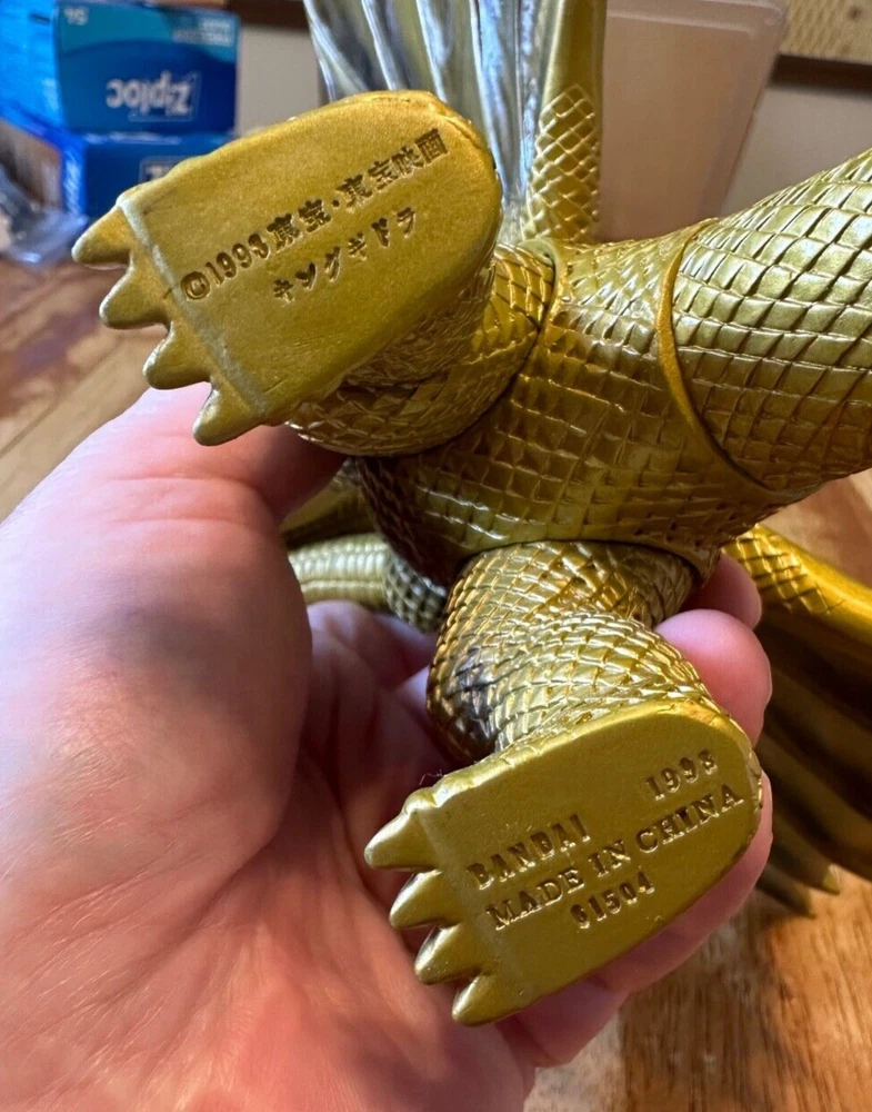 Godzilla: King Ghidorah Vinyl Toy Figure • Measures Roughly: 11" x 9" x 9" • Molded Stamp on Left Foot: 'BANDAI 1993, MADE IN CHINA, 61504' Figure is in excellent condition, has been in storage for awhile and needs a good dusting. Bid well and good luck! ***READ BEFORE BIDDING*** This item is 'sold as is' and described to the best of my abilities. Please review all images before bidding. No additional images will be taken (requests will be ignored). Sets will not be broken up for individual sale. No bargaining or haggling will be accepted. All offers outside of eBay will be ignored. Serious bidders only (all non-payments will be reported after 10 days of auction's end). All sales final (retractions of any kind will not be accepted and will be reported). ***SHIPPING*** Will ship USPS only unless stated otherwise. Combined shipping of multiple auction items will be accepted; though will be at the buyer’s responsibility during checkout. Shipping carrier or method changes during checkout will not be accepted. Shipping methods and materials will be dictated by the seller only. Seller is not responsible for eBay shipping quotes before, during or after auction closing. Bidding and payment cancellations will not be accepted due to eBay shipping quote disputes. All excess shipping charges will be refunded once payment has been received.