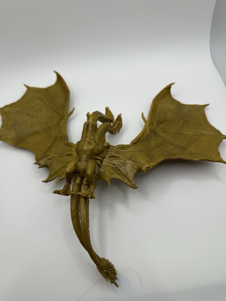 The Godzilla King Ghidorah Figure by Jakks Pacific is a 6-inch action figure featuring the iconic character from the Godzilla franchise. This officially licensed reproduction from the Godzilla King Of The Monsters series is made of durable plastic and showcases King Ghidorah in all his monstrous glory. With its gold color scheme and detailed design, this collectible item is a must-have for both boys and girls who are fans of the Godzilla TV show and movies. The figure comes without packaging and is a great addition to any action figure collection.