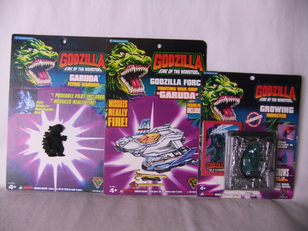Hello and thanks for checking out my stuff. . Godzilla King Of The Monsters 1994 Prototype Mock Up Trendmasters Carded Toy Lot, three great mock up Godzilla toys from the King Of The Monsters line produced by Trendmasters in 1994, all of these are blank back mock up pieces some are cut and pasted together. #1: Growing Monster 7 x 8 1/2 inch card, has bubble stapled on but is loose, includes trading card and growing figure, back is stained but does not effect the front. #2 Godzilla Force Fighting War Ship Garuda, kind of a flat print with the ship pieces glued down, card measures 10 12 x 7 inches, has a pretty clean blank back. #3 this one is weird because it's a mix of the first two, the card says Garuda Flying Warship but there is a black growing monster glued to the board, not sure what the story is there, blank back is clean. All are in solid condition, a few dings here and there but nothing major, other than the stain on the one, these seem to be pretty scarce and i have not been able to find others for sale like this, nice display set for a serious Godzilla collector. (Toys 50590) Shipping: 15.95 insured priority shipping in the USA, I only use the global shipping program for international orders. I have been dealing in collectible's since 1987 and try and describe things as best as possible. If you have any questions please ask. Records are cleaned with a Spin Clean (unless new), with inner and outer sleeve. If you want your record shipped outside of the jacket please let me know, otherwise i will ship in the jacket. I am a bidder just like you and hate to get damaged items in because of shoddy packaging. That's why all my items are packed with care, records are shipped in durable record mailers, books are sleeved, padded and sent in bubble mailers or box. No packages with items thrown in a box to clank around from me, I would rather loose a few bucks on shipping to get an expensive item to you undamaged. Some of my grading guidelines: Records: NM/VG+/VG/Good/Poor, I don't use Excellent as a grade, in the old school grading system VG+ is Excellent. I have been dealing and collecting records for almost 25 years, I visually grade accurately and play grade as many as I can. Coins: I am not an expert but try and give a accurate grade and try and show the best photos I can. If you disagree with a coin grade let me know and I will give it another look. Books: I do sell a lot of library books, all of these are graded as Acceptable because of the marks, even if it has never been checked out and is in great shape. I stick with the New/Like New/Very Good/Good/Acceptable and Poor in rare cases. Everything else: I try and stick to the standard method of grading and give the best description possible. Once again if you have any questions about the quality of any item please ask. Returns: I am easy to deal with and want you to be happy with your stuff. Returns must be received back within seven days of delivery, Please contact me within 2 days of receiving if there is a problem. Once again easy to deal with and want you to be happy.