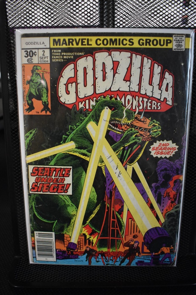 Godzilla King of Monsters #2 Newsstand Marvel 1977 Condition: 4.0 We use a 1-10 rating scale for comics. Shipping will be $5.99. We ship by USPS Ground Advantage and USPS Media Mail. It is .50 cents per comic extra for combined shipping. Please request an invoice for combined shipping. All comics come bagged and boarded for protection. We ship in Gemini Mailers & Boxes for protection! We ship same or next day business day on all paid orders Monday-Friday. NO INTERNATIONAL SHIPPING. Payment is due within 2 days. We do not cancel transactions or retract bids. If you have any questions please let us know. We will answer all questions very quickly. Visit our store for 1000's of comics, TPB's, Hardcovers & other comic related merchandise.