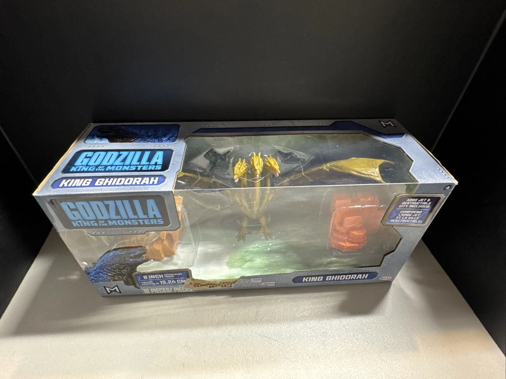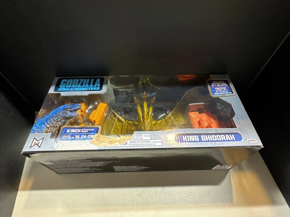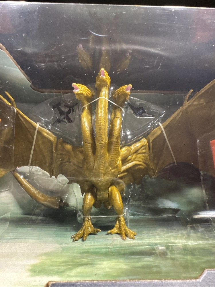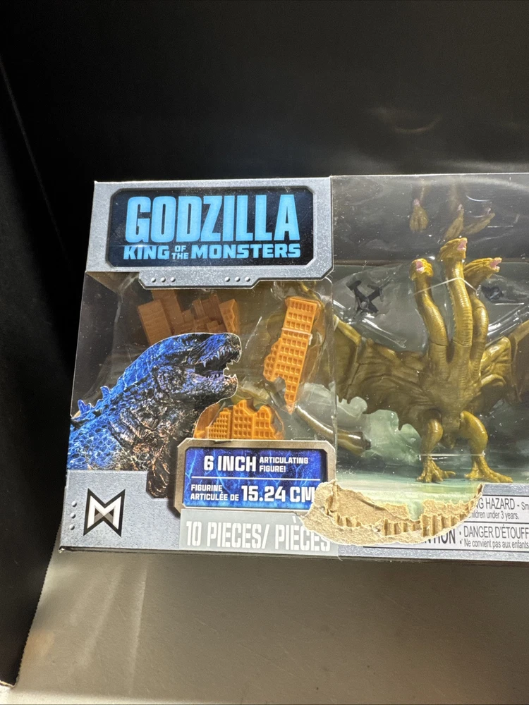 This 6-inch figure pack features King Ghidorah from the Godzilla King of Monsters movie, as portrayed by JAKKS Pacific in 2019. The pack includes a custom bundle of all the necessary accessories and modifications to create an epic monster battle. Fans of Godzilla and JAKKS Pacific will love adding this rare and highly sought-after item to their collection. Perfect for collectors of all ages, this figure pack is sure to provide hours of entertainment and display possibilities. Box package has shelf wear including damage on front bottom cardboard has some torn off, some creases, and some corner edges wear. Multiple Photos are provided to please use as additional description details. See pictures for Details. The pictures are of THE ACTUAL ITEM that you are bidding on or purchasing. Please E-Mail first with Any Questions before purchase or bidding. Thanks for Looking and Good Luck!
