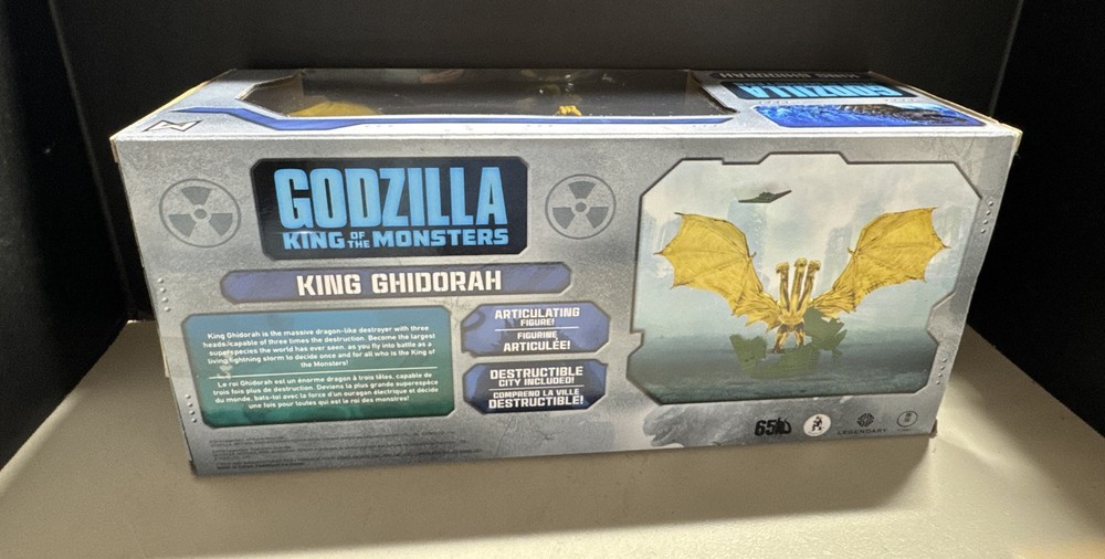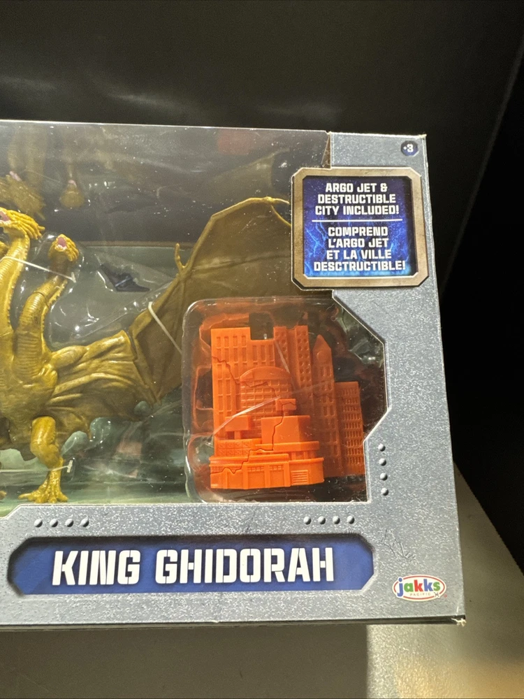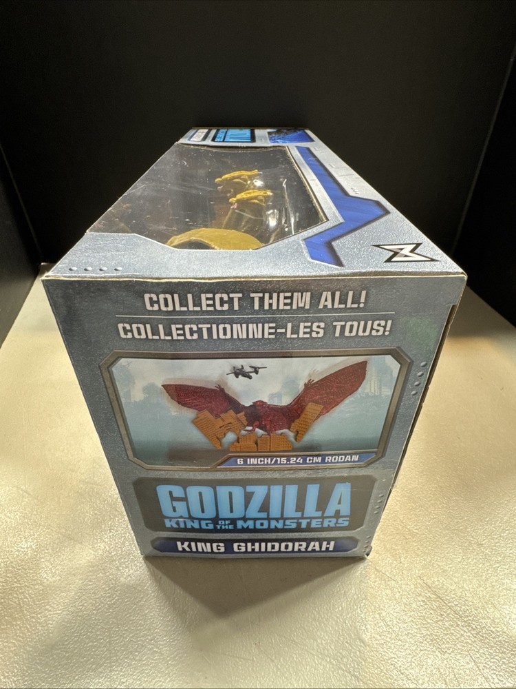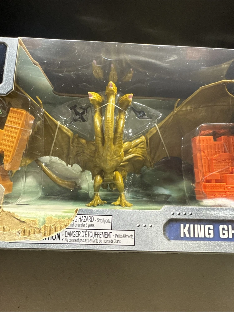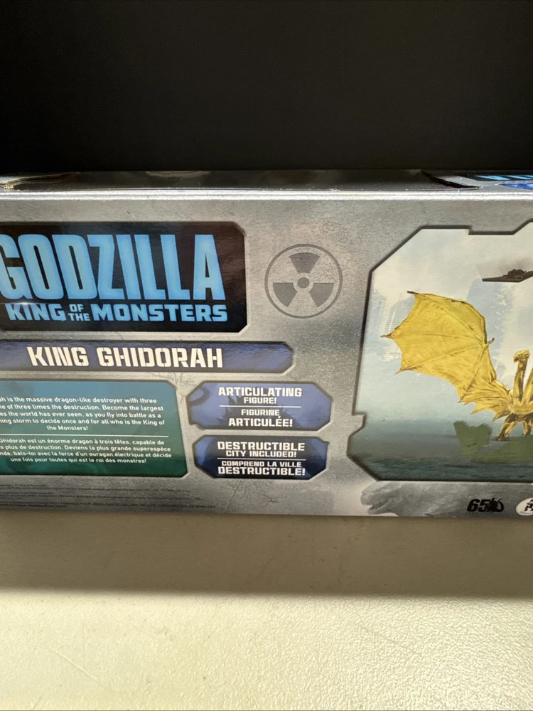 This 6-inch figure pack features King Ghidorah from the Godzilla King of Monsters movie, as portrayed by JAKKS Pacific in 2019. The pack includes a custom bundle of all the necessary accessories and modifications to create an epic monster battle. Fans of Godzilla and JAKKS Pacific will love adding this rare and highly sought-after item to their collection. Perfect for collectors of all ages, this figure pack is sure to provide hours of entertainment and display possibilities. Box package has shelf wear including damage on front bottom cardboard has some torn off, some creases, and some corner edges wear. Multiple Photos are provided to please use as additional description details. See pictures for Details. The pictures are of THE ACTUAL ITEM that you are bidding on or purchasing. Please E-Mail first with Any Questions before purchase or bidding. Thanks for Looking and Good Luck!