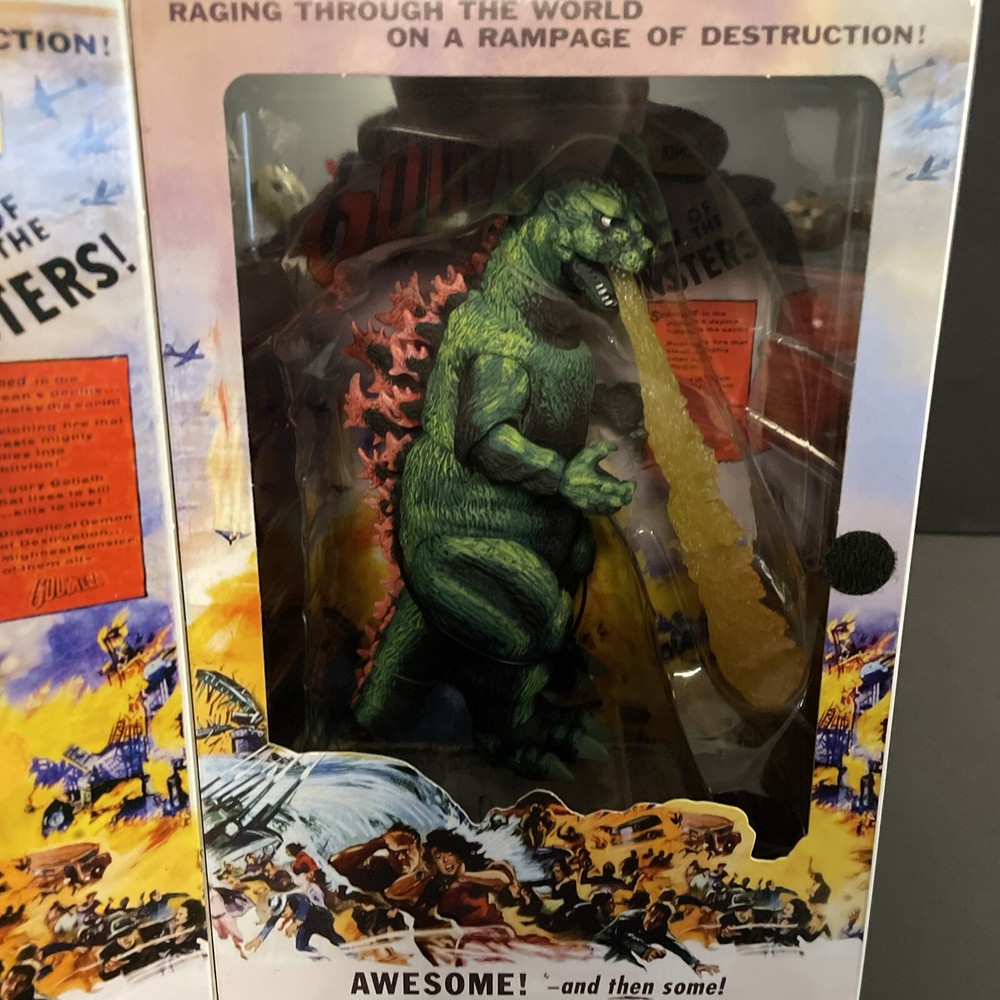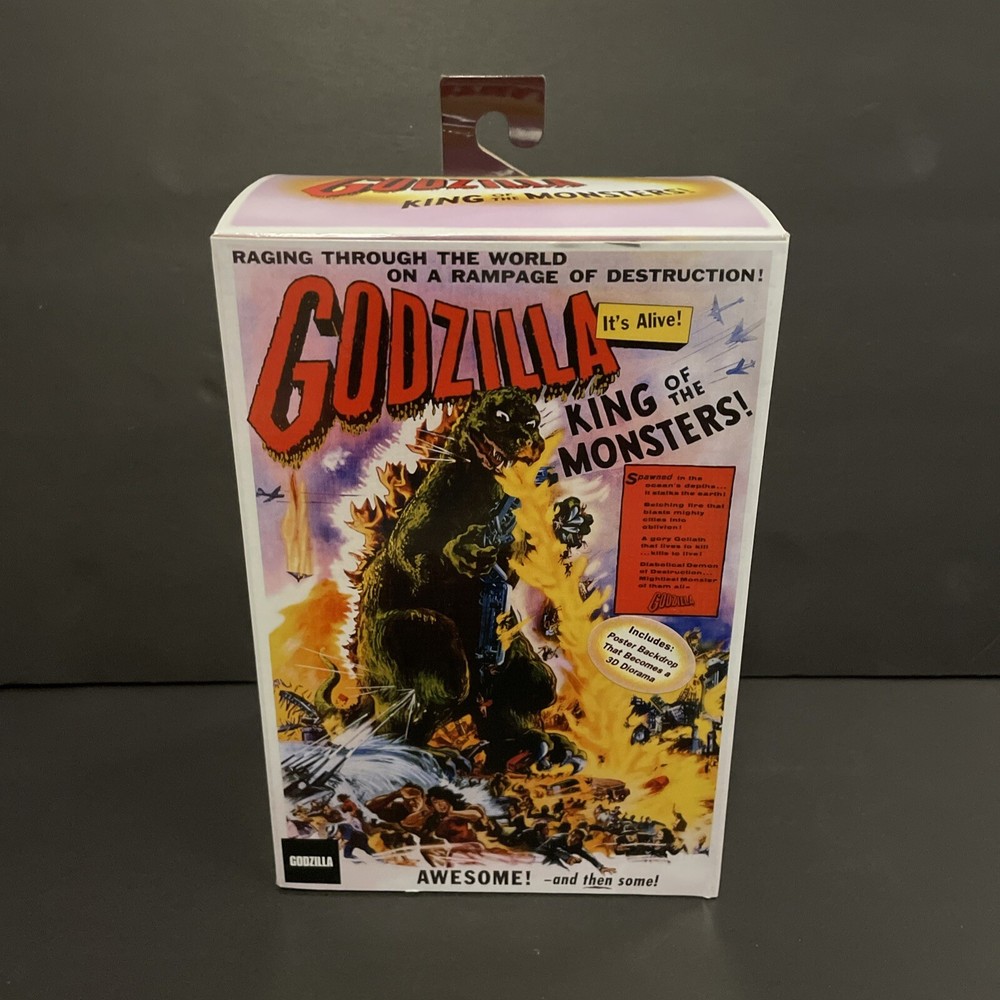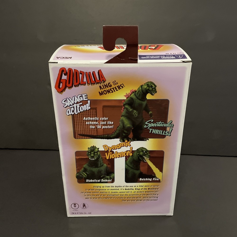 This is a NECA action figure from the Godzilla franchise celebrating its 65th anniversary. The figure represents Godzilla, the iconic monster character, and is inspired by the movie "Godzilla." It is a detailed collectible item that pays homage to the "King of Monsters" in the Godzilla series.
