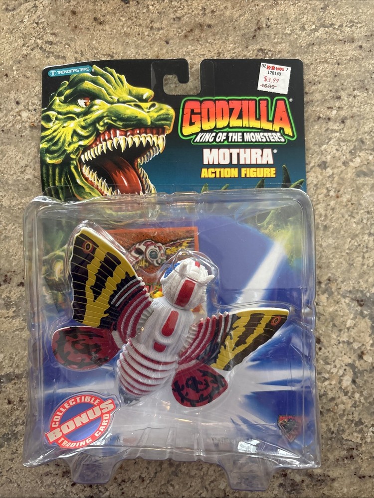 Hello and thanks for looking at my listing. I inherited a ton of new inbox, spawn action figures. Lots of random action figures new in the box. More DVDs and records then I knew existed. They have been in a clean and dry basement in Chicago since the 1990s. Some have indent in the plastic shell. Also some cardboard corner fatigue. Please look at pictures. If you have any questions, feel free to ask and I will do my best. This Mothra figures looks really sharp. There are some dents on plastic and the corners are turning up in some spots.