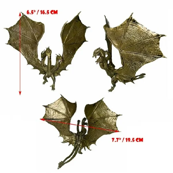 Godzilla King of the Monster 6 PCS Figures PVC Set. Great Set Free Ship Free Shipping by a US based small business and I ship fast! All orders are shipped out by the next business day. GODZILLA(2019) 3.5 " (height) GODZILLA Burnig Version(2019) 3.5 " (height) GHIDORAH(2019) 3.7" height x 8.3" width RODAN 3.6" height x 5.5 " width MOTHRA LARVAE 3.5" Depth MOTHRA 6.7 " width