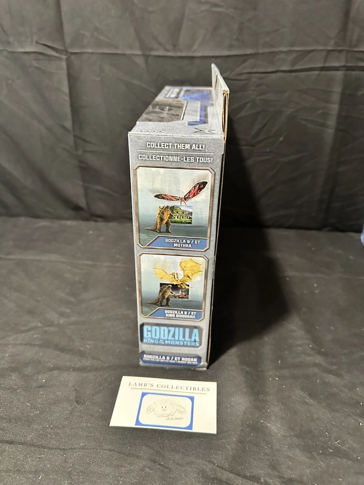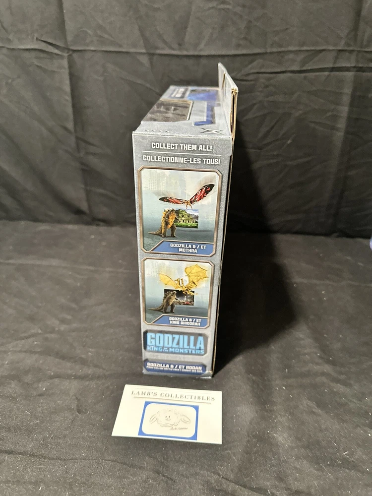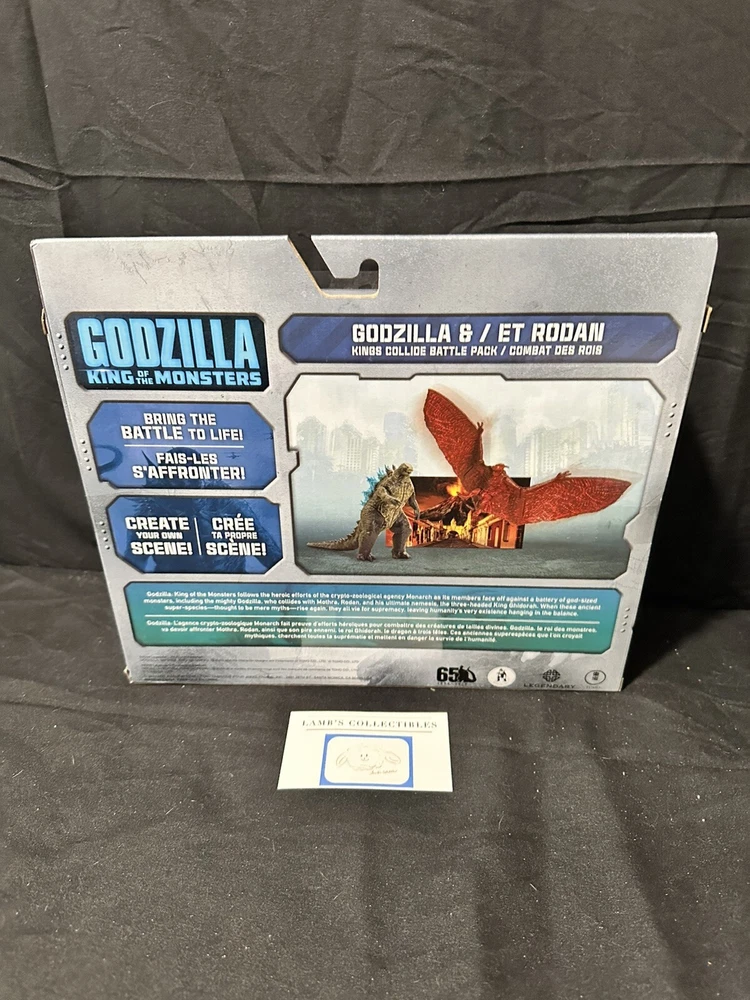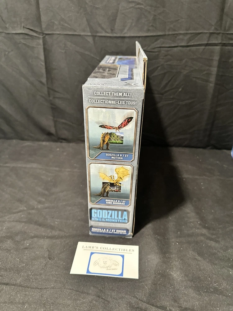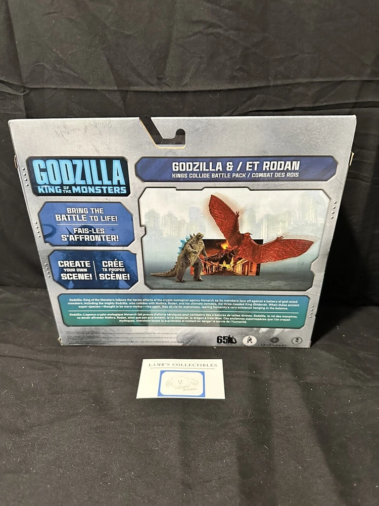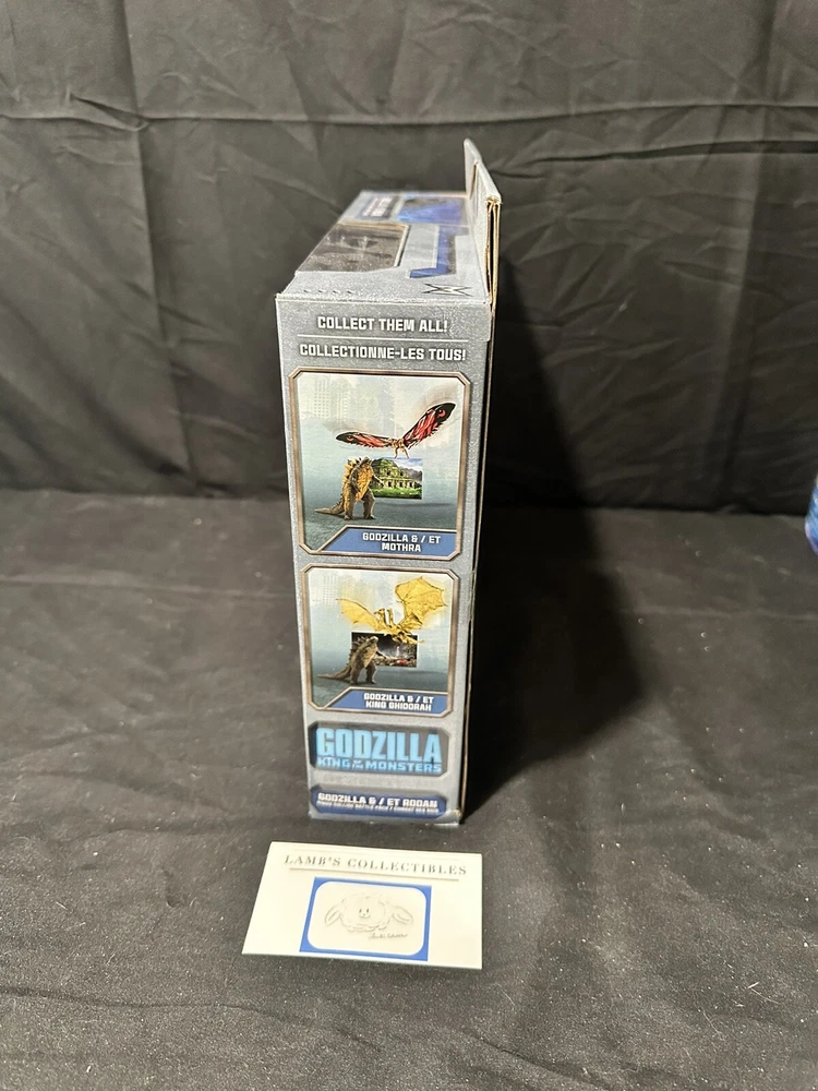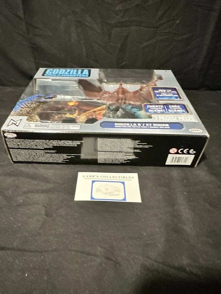 Godzilla King of the Monsters 3" Godzilla 7" Long wings Rodan action figures set Jakks Pacific approx 3.5" tall assembly required there are some creases/dings on the front plastic clam shell and along the edges of the package set includes: Godzilla figure, Rodan figure and two background scenes with stands this item has not been professionally graded Please review all photos, policies & contact us with any questions. Thank You! Lamb’s Collectibles I nternational Buyers Import duties, taxes, & charges are not included in item price or shipping cost & are buyer's responsibility. Customers report packages arrive safely & quickly.