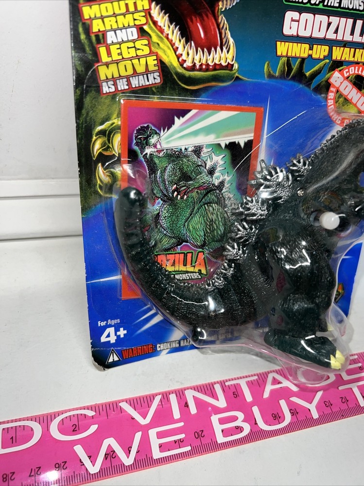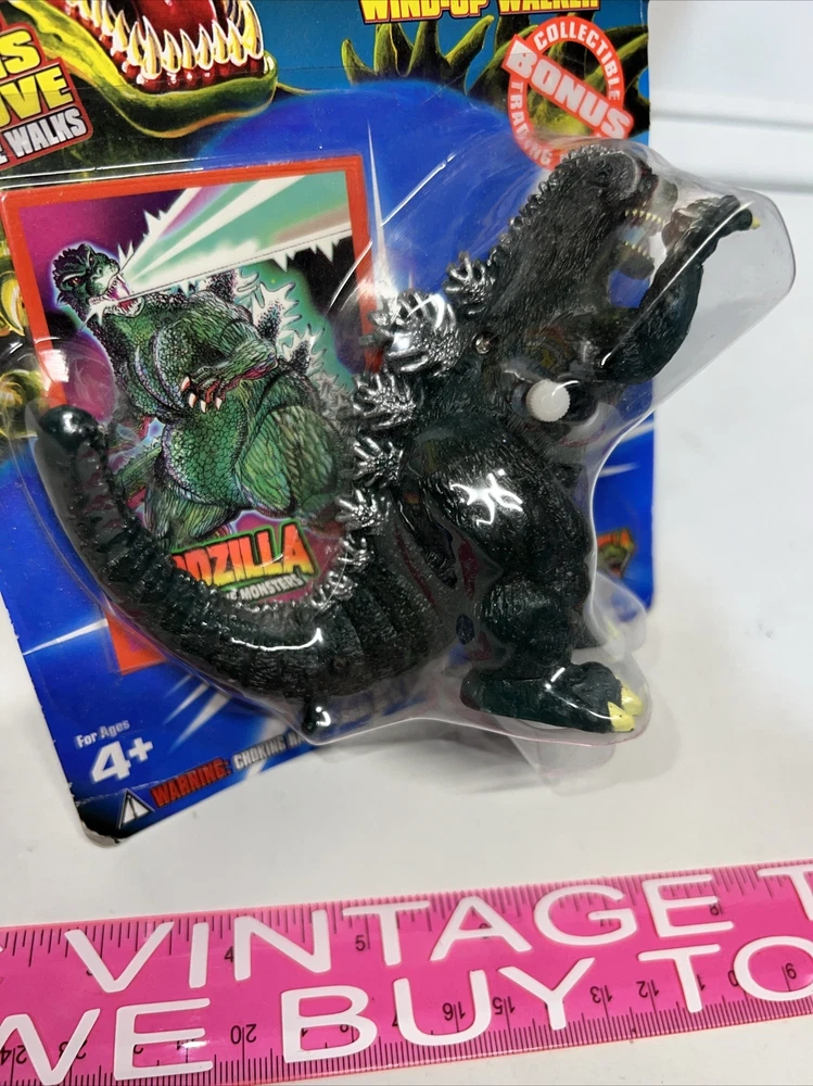 Godzilla King of the Monsters Wind-Up Walker Action Figure Trendmasters Rare Bubble dent bottom stem of bubble Bubble is clear and fully sealed Card shows some shelf ware Card shows some waviness If you find the time please view my other items Thanks for looking,Dennis