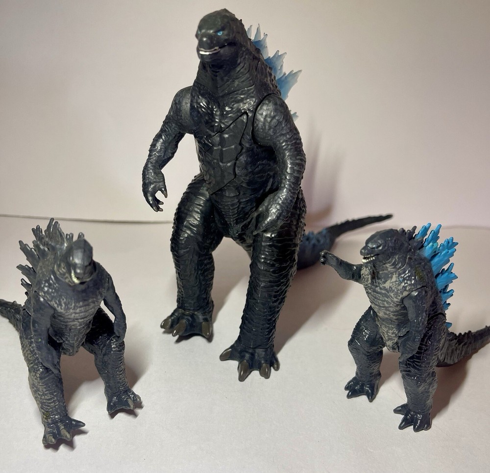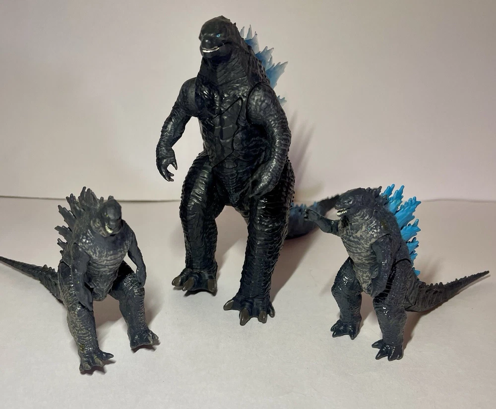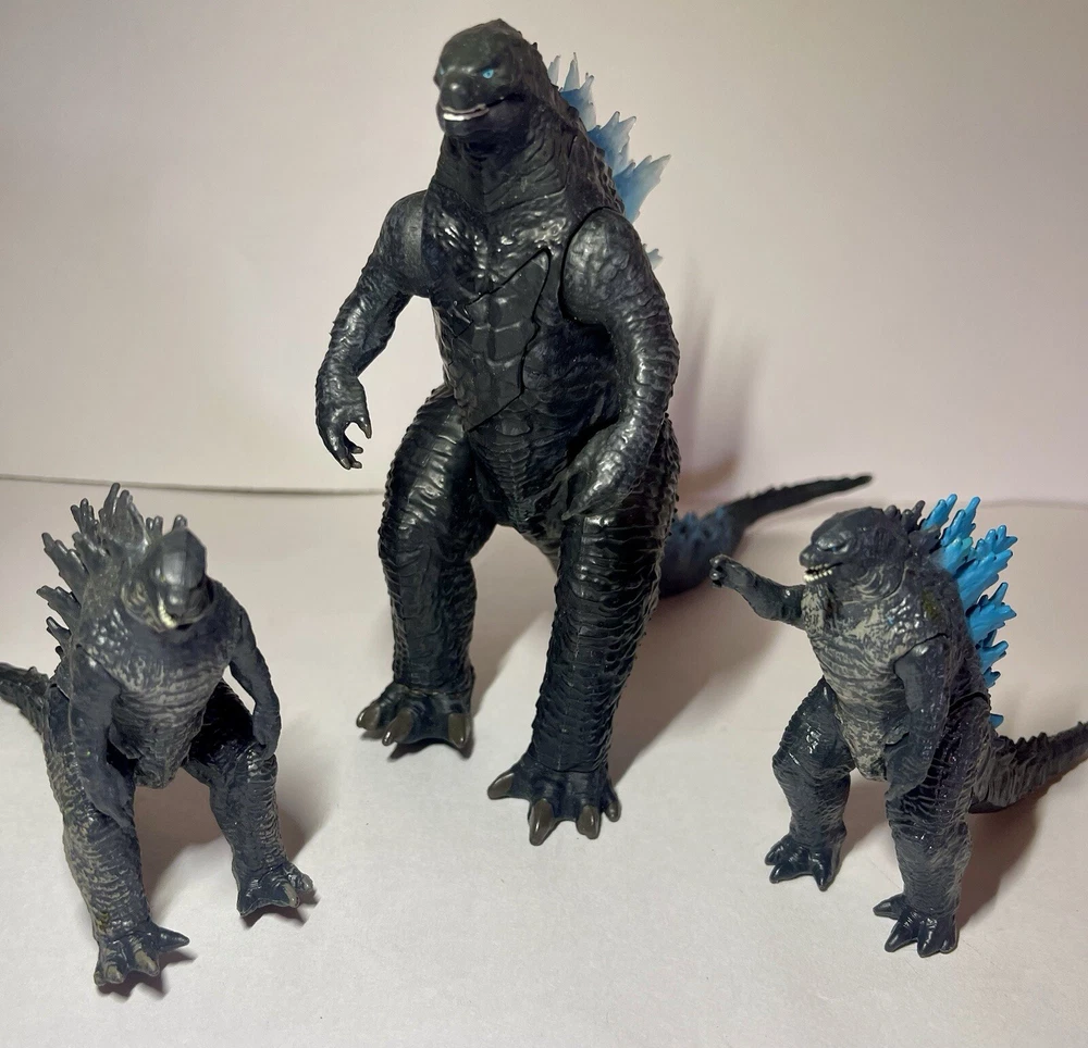 Introducing the Godzilla Legendary Creature Action Figures, perfect for fans of the iconic movie franchise. These action figures are expertly crafted with durable plastic material and feature the famed Godzilla character in a variety of sizes: 11 inches, 7 inches, and 6 inches. All in excellent condition ready for play or display.
