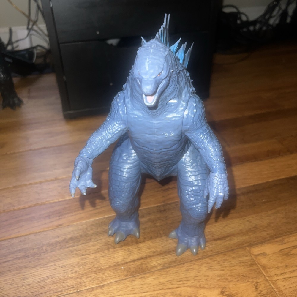 The "Godzilla Legendary TOHO Mega" action figure by Playmates is a 12" long and 11" tall toy from 2020, featuring the iconic Godzilla character in a blue color variant. Suitable for ages 4 and up, this figure is a part of the Godzilla theme and is sure to delight fans of the monster franchise.