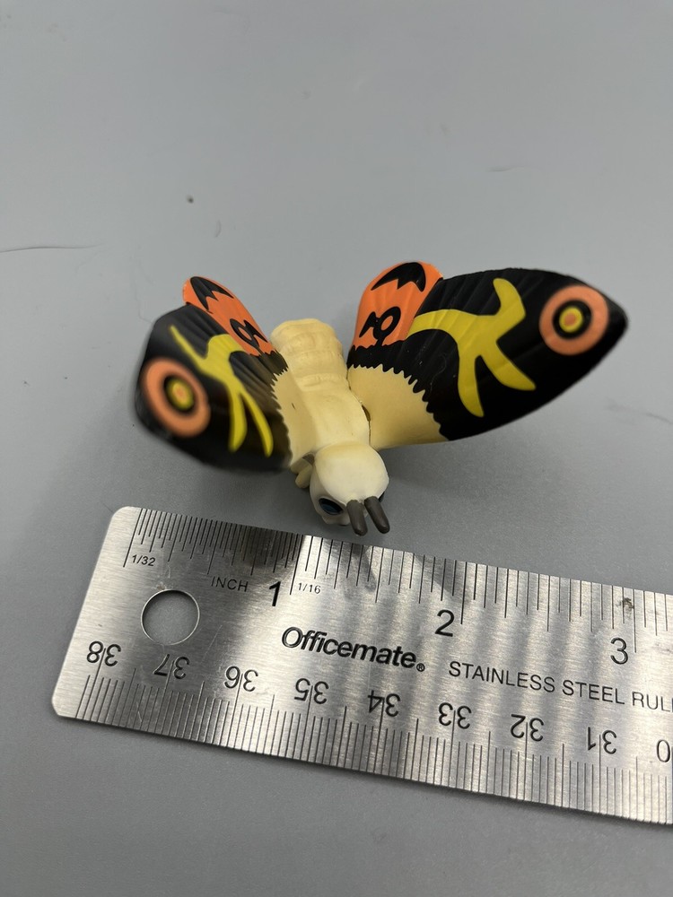 This listing is for a Godzilla MOTHRA the Moth plastic figure toy. It is approximately 2" long and in good, used condition. Important Information We are always willing to consider best offers. Our Items For most of the items, I am not the original owner, they have been purchased second hand; unless stated as new. I do not know if the items have been around pets. I do my best to inspect each item before I add them to my inventory and reject any item that has noticeable pet fur or any foul odors including cigarette smoke. We do have cats in our home and they are never allowed in our shop room. Toys and games have been tested and checked for missing pieces; any issues will be noted in the description. Unless listed as new, our toys may have scruffs and marks from play, and or small areas of missing or rubbed paint. Any serious defects we will do our best to note in the description. Please Note *Plush toys and dolls may smell of fabric freshener, fabric softener, scented beads or other fragrances. I do run a scented oil defuser in my shop. Please keep this in mind if you are sensitive to fragrances. *For my listings of Ty plush, IF, the hang tag is attached it is not in mint condition. It may have creasing, writing, stickers (or sticker residue) and or wear. If I have (have had) multiple quantities of a particular Beanie Baby, you may receive a different item than in the photo. I also list the Beanie Babies by their name and not by the generation. So, the plush you receive must have a different tag style than the photo. The sewn in tag may also be faded. If this is an issue please feel free to ask for additional information. * For my listings of Ty Beanie Boos, the eyes may have scuffs and marks from play. * For plush toys where the placement of the pattern and colors are not consistent, if I have more than one of the plush available the patterns or color placement may vary. * For plush toys the sewn in tag will be attached unless otherwise noted although it may be faded or have slight frayed edges. The plush may have loose strings that may need to be snipped. I am in the process of updating the listing to include if the plush contain bean pellets (most do). If bean pellets are an issue and it is not noted in the listing, please double check before purchasing. * For Build a Bear Workshop plush the sewn in tag will be attached unless noted in the description. The plush may have sound boxes sewn inside (working or with drained batteries). The amount of stuffing in each plush may vary. * For my kids meal toys, the plastic may be crinkled . Bags will be factory sealed unless otherwise noted. With you pick style listings, the Happy Meal Box shown in the gallery photo is not included. * Please note for my dolls there may be scuffs, missing paint and marks from play. The doll?s hair may need styling and a good brushing. The hair may also contain scented products like hairspray, gel or detangler. Some strands of hair my be cut. I will note in the listing if I suspect or notice it has been cut. * Dress Forms and Stands are NOT included unless stated otherwise in the listing description. * Please keep in mind that, unless noted, these plush toys are not intended for pets. Hard eyes, buttons, stuffing and bean pellets pose danger to your fur babies. If you are purchasing any of our plush for your pet, please check it over carefully. Most plush toys do have some bean pellets inside. I try to note when the plush is majority bean pellets, but they do sometimes get past me. * For electronic items most of them will be shipped without batteries. Sometimes in shipment batteries will explode or leak especially during extreme temperatures. In order to assure your items arrives safely, we do not include batteries in most cases. * Ceramics will have noticed flaws listed in the description. I will package will care in a sturdy box. * Books may have previous owner?s name written on the inside cover. Books may have dog eared pages and some highlighting. Covers may have shelf wear and wear to the spine. Best offers We are always willing to consider best offers. Please note that if submitting best offers on multiple of our items and you have automatic payment enabled on your account, combined shipping will not be automatically applied. If items are purchased separately, please send a message to let me know that I need to combine the order. I may not always notice a duplicate customer before shipping. Payment When automatic payment is not used, payment is expected within THREE days of the listing ending. Please contact us if you will be delayed in your payment. Shipping We ship most all plush toys and clothing items in poly mail plastic bags. If you want your purchase shipped in a box please contact us before sending payment. Please note that shipping costs will increase with the weight of the box. Anything easily breakable will be shipped in a box. Most items will be shipped within two business days after payment is received. The tracking number will be automatically entered into the purchase details on your eBay account once the shipping label is printed. The delivery date estimate is given by eBay and not guaranteed by the USPS. They have their own timeline that does not always correspond to the date estimate from eBay. Once the package is dropped off, I have no control of the speed that the USPS delivers the package. In most cases, we do combine shipping for multiple purchases. However, if one or more of your items would be shipped via Media Mail (books, CD's, DVD's and videos), those items would have to be shipped separately from items going out via other shipping methods. Our feedback is automated. Once positive feedback is received, positive feedback is then returned. Contact Us We try very hard to be accurate in the descriptions of our items. But we're only human, and sometimes things do slip past our notice. If you have any issues or concerns with your purchase, please contact us and give us a chance to addres