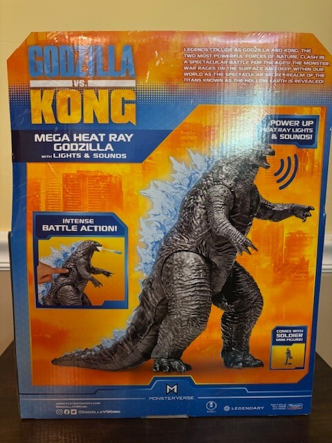 Auction is for one Mega Heat Ray Godzilla with lights and sounds 13" tall figure by Playmates Toys as depicted. Figure lights up and plays sounds and still works perfectly (please see video). Figure and accessories have never been removed from box. Box is in excellent condition with minimal shelf wear. Item comes from a smoke-free home. Item will be shipped in a box and surrounded with needed bubble wrap/packing peanuts to ensure a safe delivery. Please message with any questions. Thanks for looking!