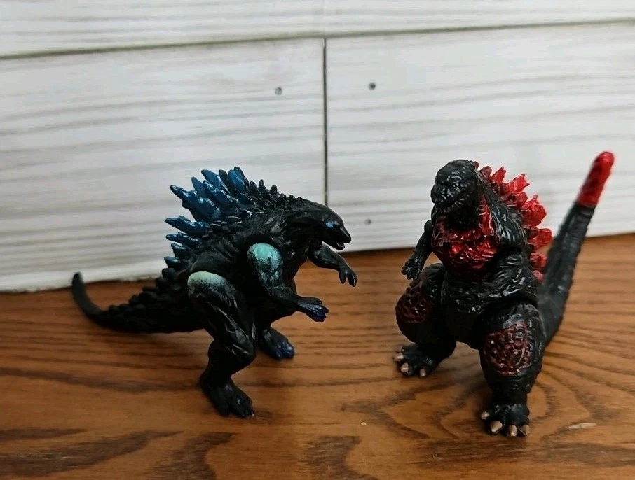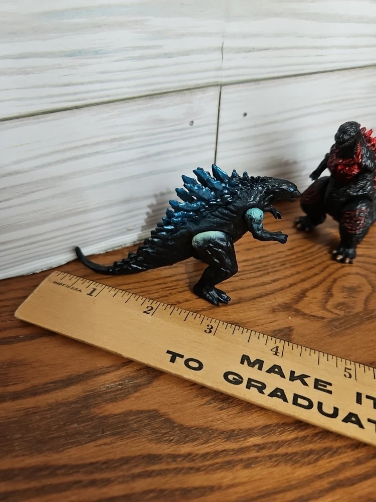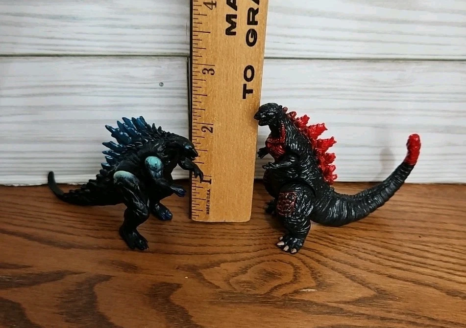 Preowned very good condition. See Photos This lot includes two mini figures of the iconic monster, Godzilla, with movable arms. These figures are perfect for fans of the franchise and collectors alike. They stand at approximately 2 inches tall and are made in China. The recommended age range for these figures is 6-10 years old, but they are also suitable for older children and adults. The lot contains two figures, making it a great addition to any collection or playset.