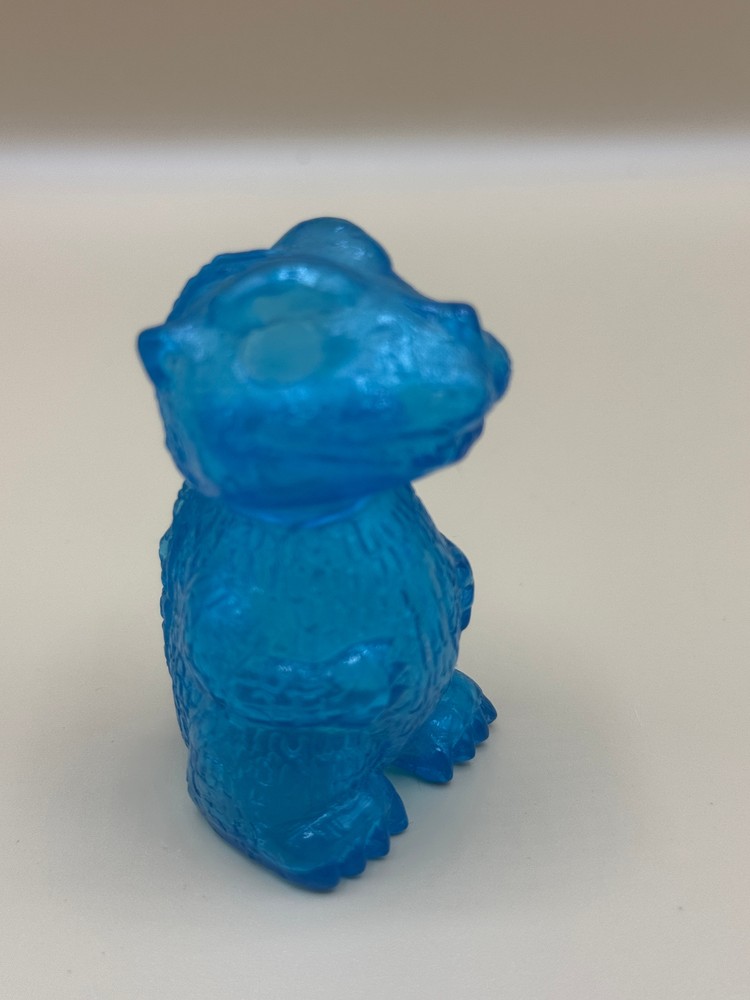 In 2000, along with a series of clear blue Vinyl Paradise releases, Marmit also gave us a set of 5 mini-figures (Godzilla, Rodan, Mothra Larva, Hedorah, Anguirus) with the same treatment. This "tiny series" is a collector-favorite and has become more and more difficult to track down (for a reasonable price) over the last few years. This GODZILLA is 2.25" tall. No packaging.