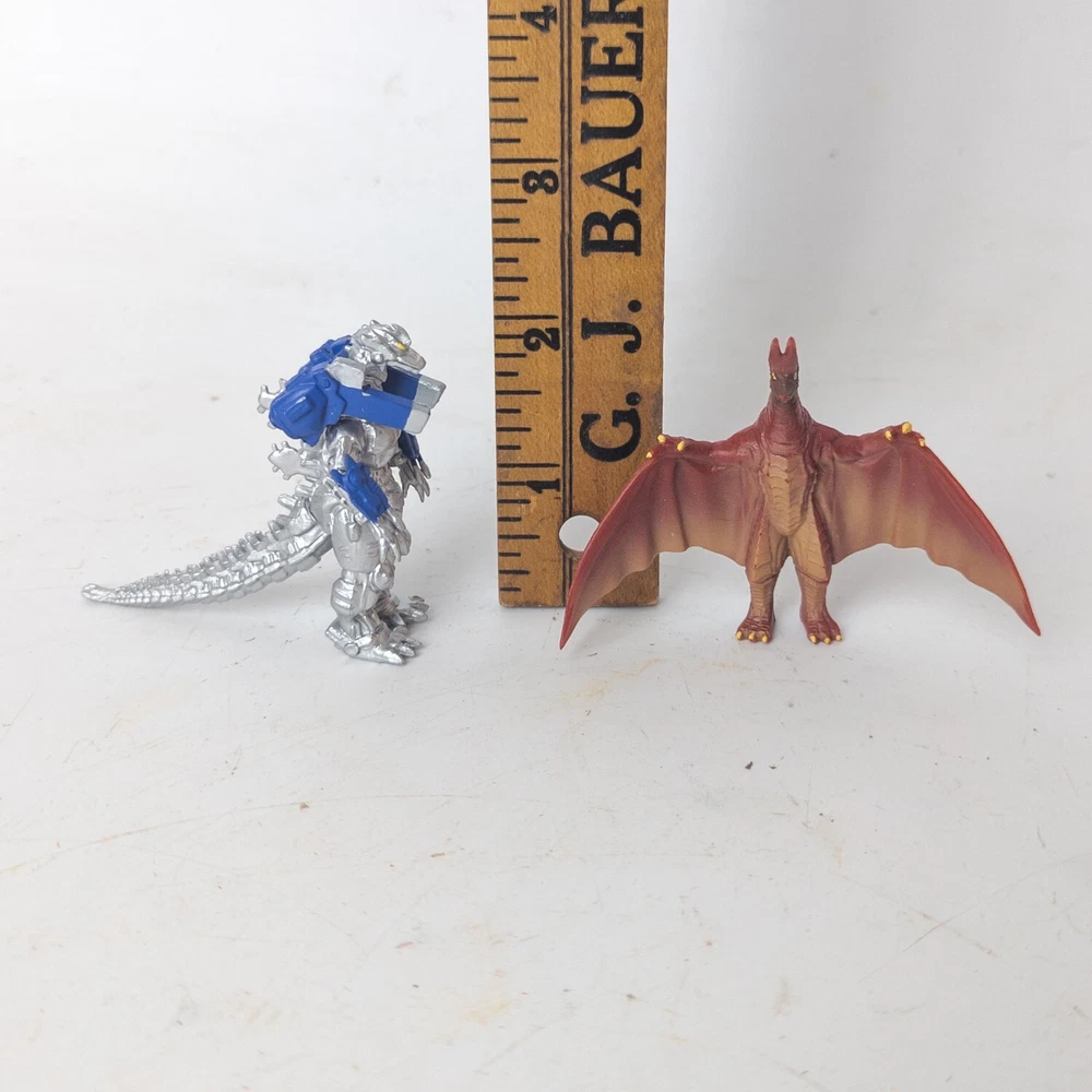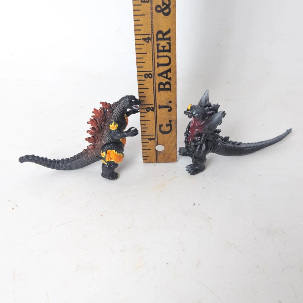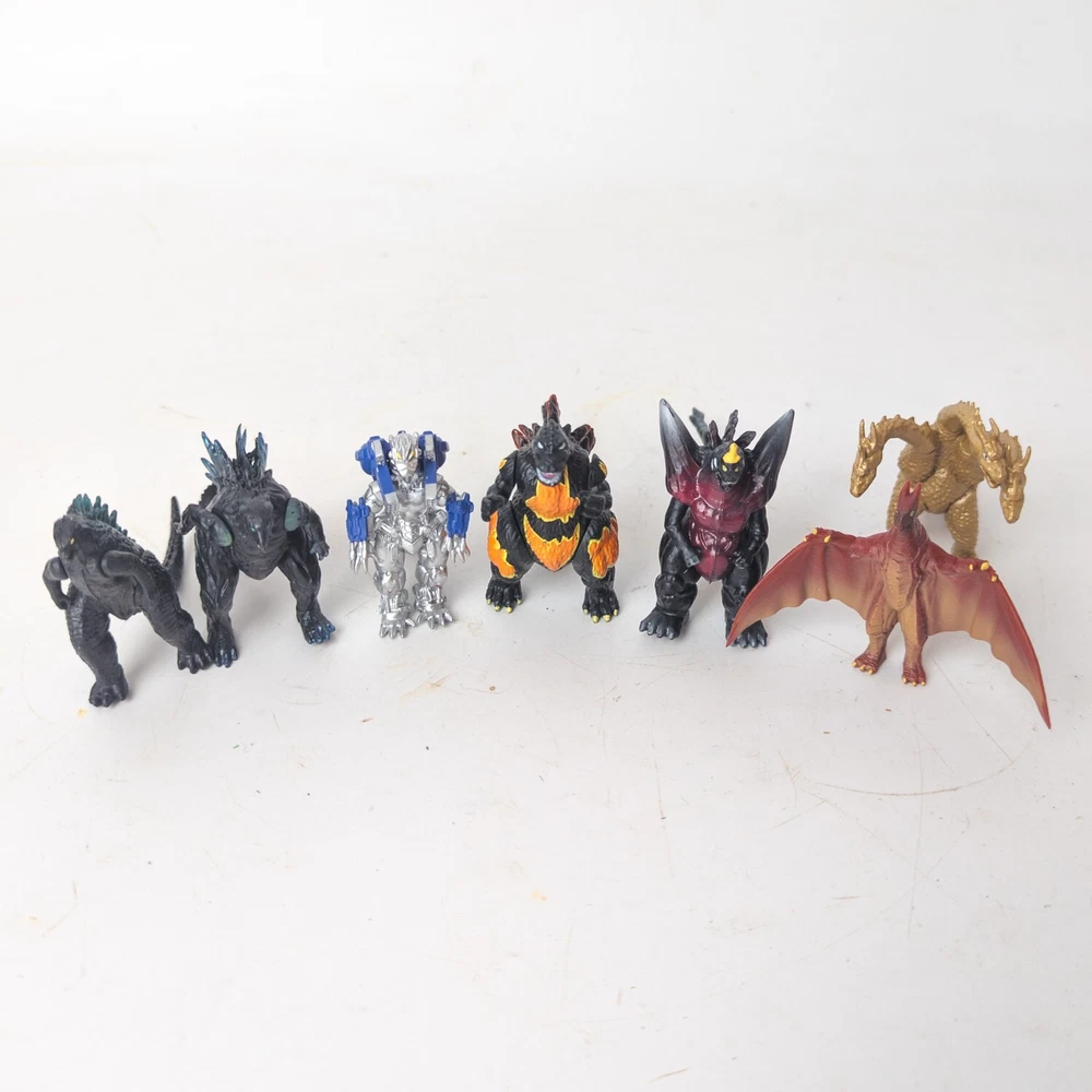 Up for Sale is a Lot of 7 Vintage Miniature Vinyl Godzilla Toy / Figures Likely Bandai from Candy Boxes or Vending Machines Articulated (Arms and Legs Move) Includes: Space Godzilla, Mecha Godzilla, Rodan, King Ghidora, Burning Godzilla, Godzilla Earth, and Godzilla Each Measures 2" - 3" All in Very Good Condition Except King Ghidora is Missing His Wings