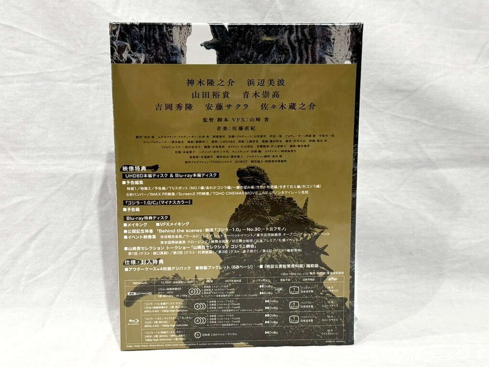 Godzilla Minus One Deluxe Edition 4K Ultra HD Blu-ray 4-Disc Set Description Brand: TOHO Condition : New Model number : VVGa39 <Story> Live and resist. Godzilla suddenly appears in a Japan that has been reduced to ashes. Is there any way for the nameless people left behind to survive and resist? Yamazaki Takashi is the director, screenwriter, and VFX director for this film, Godzilla-1.0, which commemorates Godzilla's 70th anniversary. The symbol of despair is now reborn in the Reiwa era. [Main Disc 1 4K Ultra HD Blu-ray] Main feature 125 minutes/3 layers (100G)/4K 2160p 16:9 Scope size/Dolby Vision Audio: (1) Japanese Dolby Atmos (2) Japanese 5.1ch Dolby TrueHD (3) Japanese 2.0ch Dolby TrueHD (4) Barrier-free Japanese audio guide 2.0ch Dolby TrueHD Subtitles: Barrier-free Japanese subtitles [Main Disc 2 Blu-ray] Main feature 125 minutes/Preview collection/2 layers (BD50G)/1080p High Definition 16:9 Scope size Audio: (1) Japanese Dolby Atmos (2) Japanese 5.1ch Dolby TrueHD (3) Japanese 2.0ch Dolby TrueHD (4) Barrier-free Japanese audio guide 2.0ch Dolby TrueHD Subtitles: Barrier-free Japanese subtitles [Godzilla-1.0/C Main Feature DISC③ Blu-ray] Feature 125 minutes/Godzilla-1.0/C Trailer/2 layers (BD50G)/1080p High Definition 16:9 Scope size Audio: (1) Japanese Dolby Atmos (2) Japanese 5.1ch Dolby TrueHD (3) Japanese 2.0ch Dolby TrueHD (4) Barrier-free Japanese audio guide 2.0ch Dolby TrueHD Subtitles: Barrier-free Japanese subtitles [Bonus DISC Blu-ray] Recording length: TBA/2 layers (BD50G)/16:9/1080p High Definition (some 1080i) Audio: Japanese 2.0ch Dolby Digital <Contents (Bonus DISC)> ■Making of ■VFX Making of ■Release Commemorative Special Behind the Scenes -No.30- Something Called " ■Event footage collection Monday, September 4, 2023: Completion report press conference Wednesday, October 18, 2023: World premiere red carpet event Monday, October 23, 2023: Tokyo International Film Festival opening red carpet Wednesday, November 1, 2023: Tokyo International Film Festival closing screening stage greeting Friday, November 3, 2023 (National Holiday): Opening day stage greeting Wednesday, November 8-Friday, November 10, 2023: North American premiere Wednesday, November 29, 2023: Sapporo event ◇Takashi Yamazaki Selection Talk Show Friday, September 15, 2023: "Takashi Yamazaki Selection Godzilla Screening" 1st (Guest: Shinji Higuchi) Friday, September 29, 2023: "Takashi Yamazaki Selection "Godzilla Screening" 2nd (Guest: Tsuguzo Murase) Friday, October 13, 2023: "Takashi Yamazaki Selection Godzilla Screening" 3rd (Guest: Shusuke Kaneko) Friday, October 27, 2023: "Takashi Yamazaki Selection Godzilla Screening" 4th (Guest: Hideaki Anno) <Trailer Collection (Main Disc 2)> ■Special Trailer 1 & 2 ■Trailer ■TV Spot No. 1/That's Godzilla/A Glimmer of Hope/The World Praises/Live and Resist/Against Godzilla ■6 Second Bumper ■IMAX PR Video ■ScreenX PR Video ■TOHO CINEMAS MOVIE LINE UP ■Cinema Mileage Announcement <Specifications and Contents> ■4-disc Digipack + outer case ■Special booklet ■〈Special disaster response materials〉Abridged version Payment Please make your payments within 3days after you have purchased. Shipping Economy Shipping Japan Post(1-3weeks) Expedited Shipping Fedex(3-5days) International Buyers - Please Note: Import duties and taxes are not included in the item price or shipping cost. Please check with your country’s customs office to determine these additional costs prior to bidding or buying. Additionally, if the delivery address is in a remote area, there may be additional charges by FedEx or DHL. If such charges occur, you may be asked to pay an additional $15 to $20.