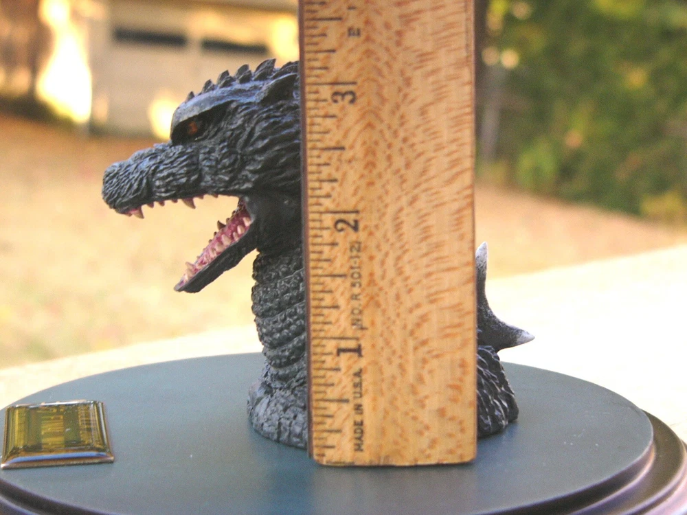 This Godzilla Monster Head figure is an amazing collectible for any fan! The sculpt and paintwork are top-notch, approved by TOHO Studios, and the resin build feels premium. The included pedestal, Lucite dust cover, and date plaque add a classy display touch. It’s not a toy but a must-have for serious collectors—highly detailed and ships fast!