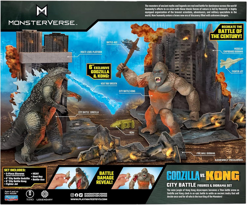 Godzilla Monsterverse City Battle Pack, Multi Description Legends collide as Godzilla and Kong, the two most powerful forces of nature, clash in a spectacular battle for the ages! The monster war rages on the surface and deep within our world as the spectacular secret realm of the titans known as the Hollow Earth is revealed! Features: Harness the awesome power of Godzilla's thunderous roar and devastating tail-swipe as the king of the monsters battles Kong to settle an ancient rivalry! Includes Godzilla and Kong 6" figures with battle damage. Multi piece, multi level city destruction diorama to reenact the big battle between Godzilla and Kong in the 2021 Blockbuster movie. Includes Godzilla's Heat Ray, Kong's Battle Axe, HEAV Vehcile and Jet Fighter accessories! Product Details: Product Dimensions: 12 x 3.7 x 10 inches Item Weight: 1.85 pounds Item model number: 35299 Manufacturer recommended age: 4 years and up Release date: March 16, 2022 Manufacturer: Playmates Toys Handling We will ship all orders within 3 business day of payment. Delivery We Do Not Ship Outside of the Continental US. Return Policy All items qualify for returns within 30 days of receipt. Buyer is responsible for return shipping on any item that is not damaged. Feedback We take our reputation seriously, we buy and sell online, so we understand the value of trust. If you are unsatisfied with your order, please contact us and we will work with you to resolve it to your satisfaction.