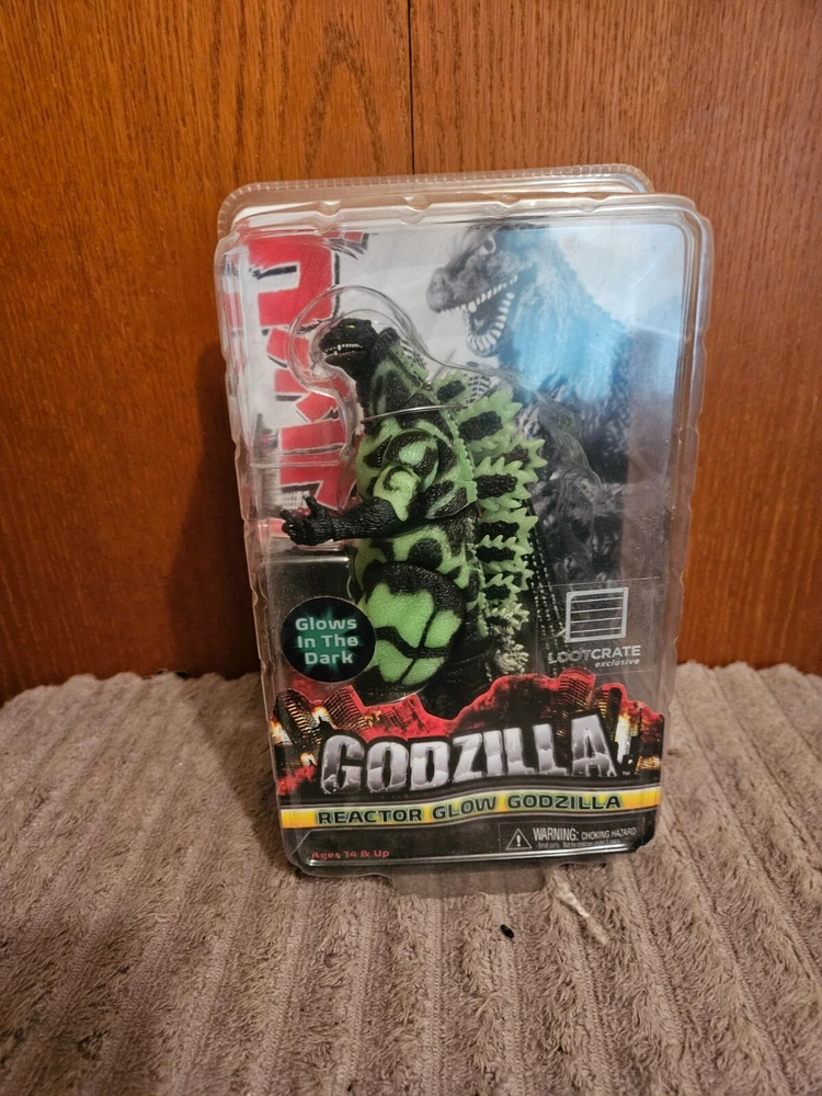 This NECA Godzilla action figure is a must-have for fans of the iconic monster. With a unique glow-in-the-dark design, this LootCrate exclusive is sure to impress. Made in China in 2017, this figure is a great addition to any collection. The attention to detail on this figure is impressive, with intricate designs and vibrant colors that bring the character to life. Whether you're a fan of Godzilla or just love collecting action figures, this NECA reactor is sure to be a hit.