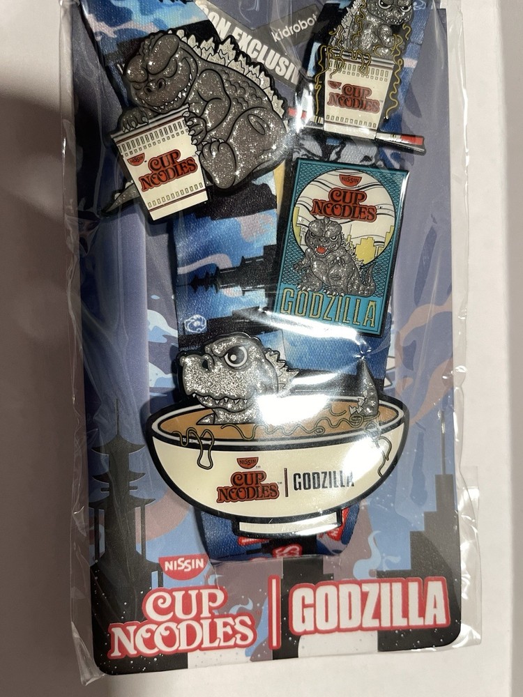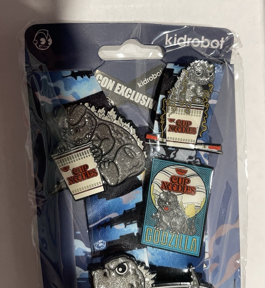 The Godzilla Nissin Cup Noodle Limited - 2022 NY Con Exclusive Lanyard & Pin Set is a highly sought-after collectible item featuring a life-size action figure of Godzilla. This limited edition set was released exclusively at the 2022 New York Comic Con, making it a unique and special addition to any action figure collection. With the collaboration between KitRobot and Nissin Cup Noodle, fans of Godzilla and pop culture memorabilia will appreciate this special release.