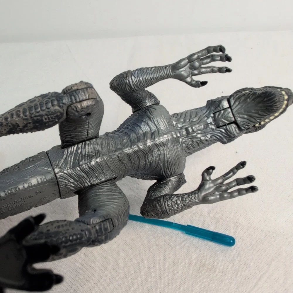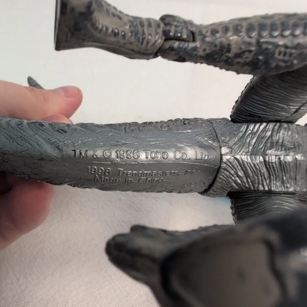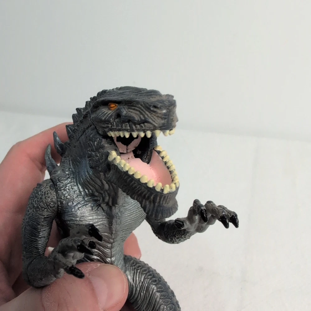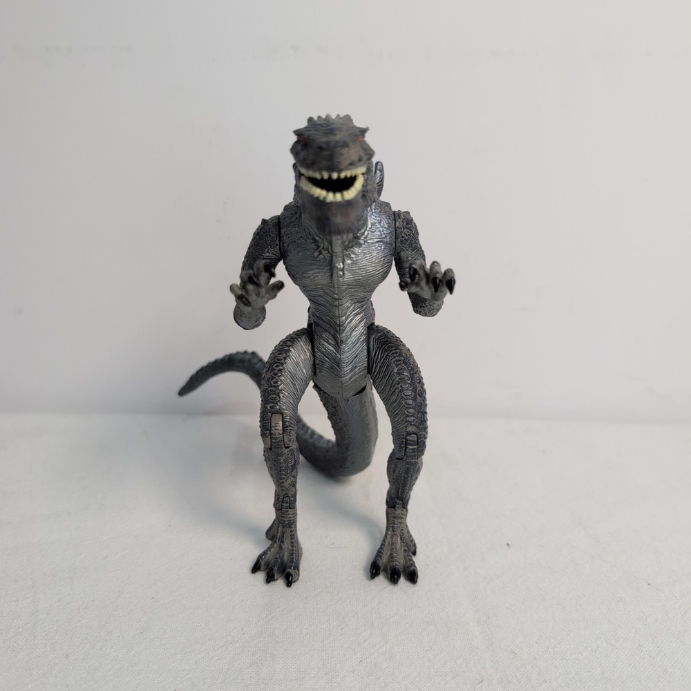 Unleash the king of monsters with the Godzilla Nuclear Strike Action Figure by Trendmasters. This 6-inch figure captures the essence of the iconic Toho film character, detailed to resemble the fearsome creature as seen in the 1998 movie. Complete with a dynamic nuclear missile accessory, this collectible is a must-have for fans of the franchise and action figure collectors alike. Whether you're recreating epic battles or displaying it proudly amongst your collection, this Godzilla action figure stands ready to bring the thrill of the cinematic experience right into your home. With its authentic branding and meticulous design, it embodies the spirit of the legendary beast with impeccable appearance Includes rare blue Missile. Shoots perfect using rear spike. Slightly bent as shown but does not affect performance The pictures form part of the description please review carefully
