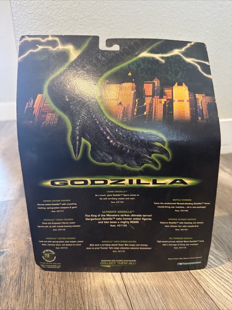 This vintage 1998 Trendmasters action figure features Godzilla with a power shield, perfect for fans of the iconic monster. The sealed packaging adds to its collectible appeal, making it a desirable addition to any Godzilla toy collection. With its detailed design and recommended age range of 4+, this action figure is sure to bring hours of imaginative play for fans of the legendary monster. Packaging has some wear Please look at pictures