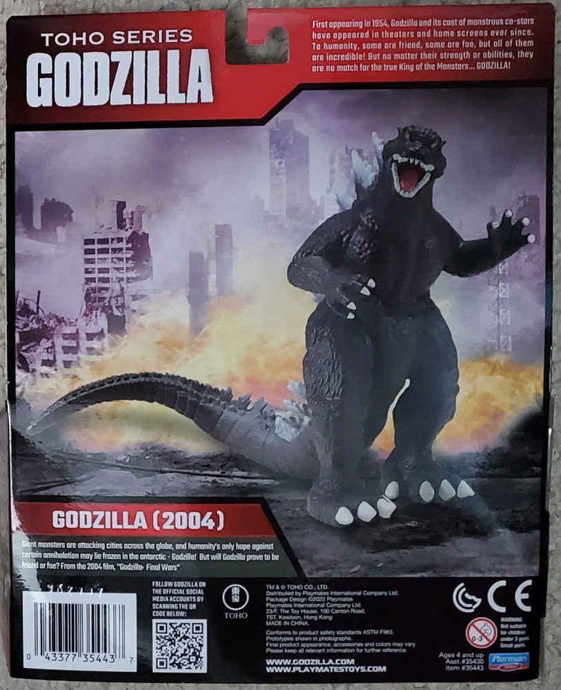 Auction is for one Godzilla Toho Series 2004 (Final Wars) 6" tall action figure by Playmates Toys as depicted. Figure has never been removed from box. Box is in excellent condition with minimal shelf wear. Item comes from a smoke-free home. Item will be shipped in a box and surrounded with needed bubble wrap/packing peanuts to ensure a safe delivery. Please message with any questions. Thanks for looking!