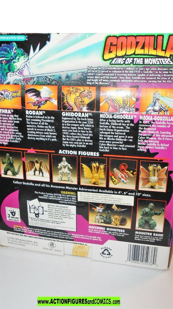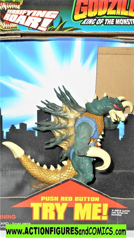 All items sold by ACTIONFIGURESandCOMICS are 100% Guaranteed and returns are accepted for any reason. Toy Biz GODZILLA 1994 5 inch electronic GIGAN 100% COMPLETE, New unused with Full box package* *Condition : figure is excellent with nice paint, and nothing broken or damaged although the figure will need batteries. Package has been previously opened in order to cut the front card out (see photos), otherwise everything is there and intact, including the ties that hold him in place. overall a nice display piece. showing some shelf wear. Figure himself is excellent. Figure Size : 5 inch electronic series box size: 10.5 inch x 8 inch x 4 inch CLICK HERE for several other figures and SAVE on Shipping Costs! Combined shipping costs for the USA: 12.95 Priority mail for as many figures as you purchase. Shipping will only be charged on one item, the item with the higher cost, and all other figures will ship in the same package for free shipping costs to All other destinations 34.95 airmail