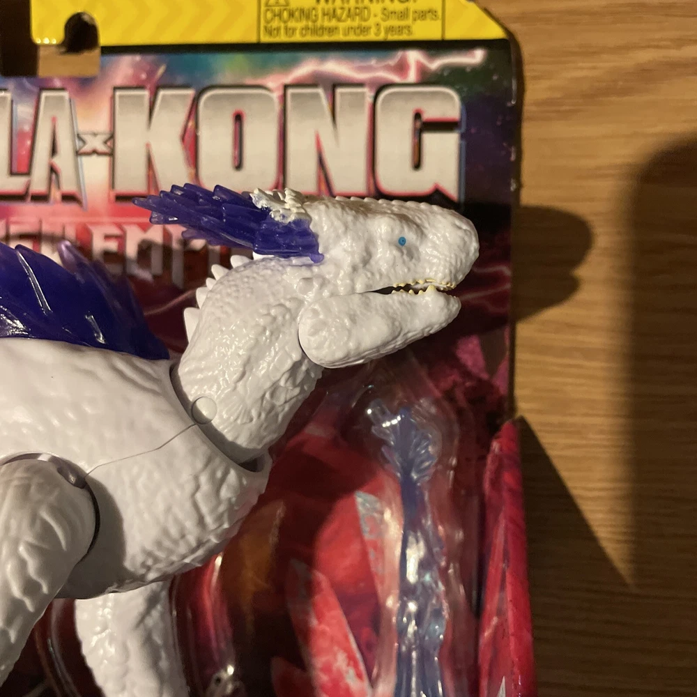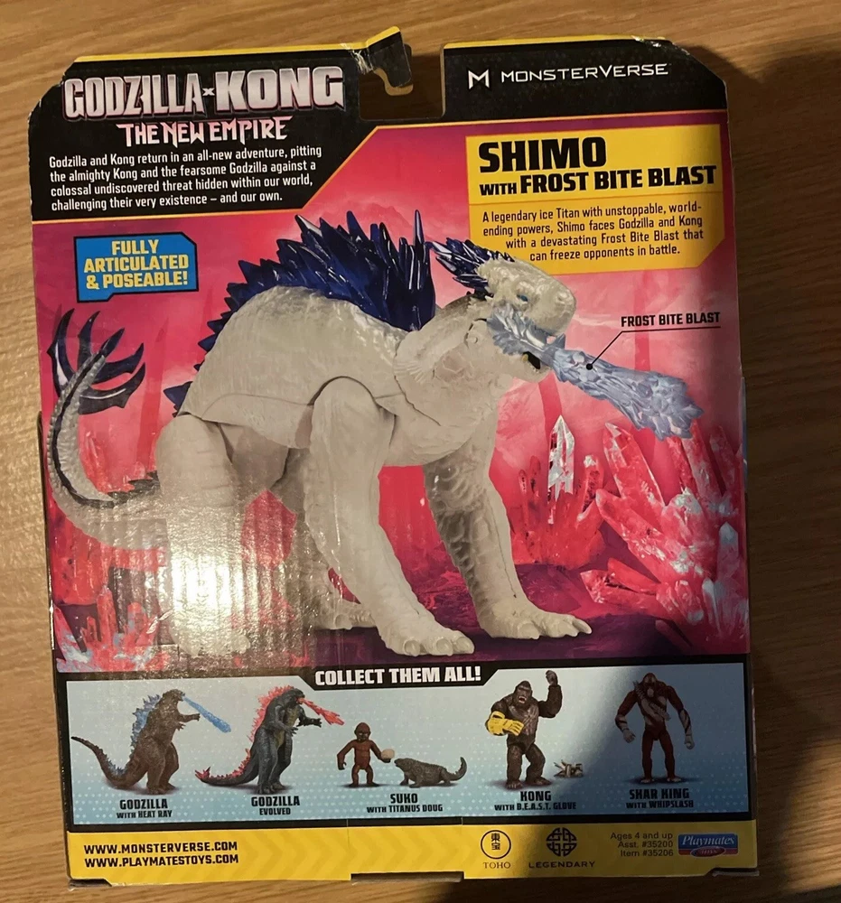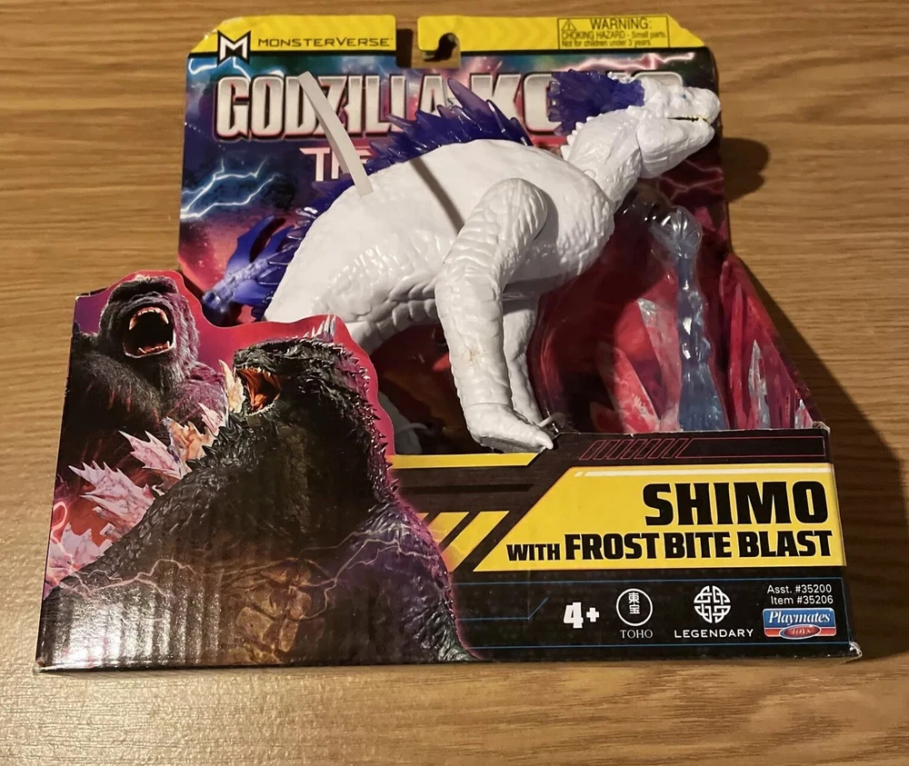 This Godzilla VS King Kong action figure is a must-have for any fan of the iconic movies. The figure stands at 6 inches tall and comes in its original, unopened packaging. The character is a licensed reproduction of the original Godzilla, and the packaging includes the Shimo with Frost Bite Blast accessory. The figure is new but the package is a bit damaged on the top “hook”, and one zip tie has been broken. Please check the photos carefully prior to purchase to see condition detail. Great for somone who loves the Godzilla franchise.