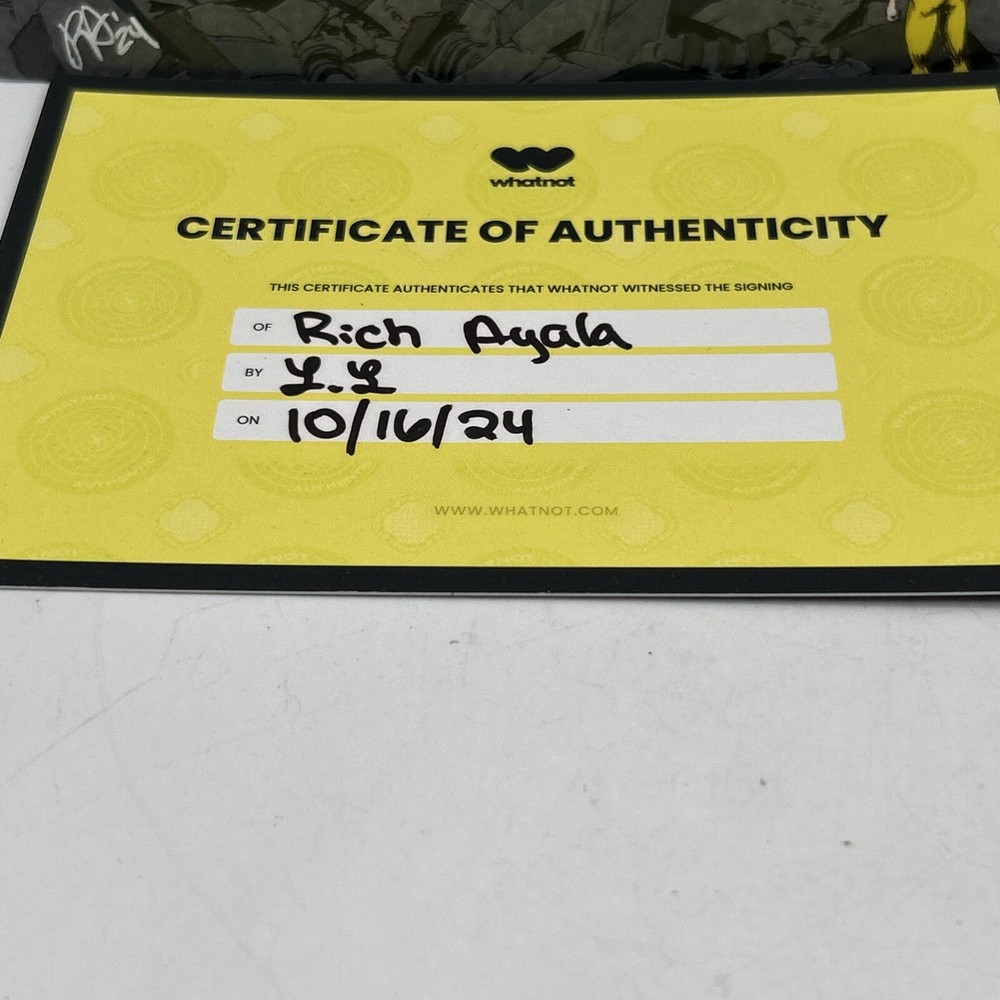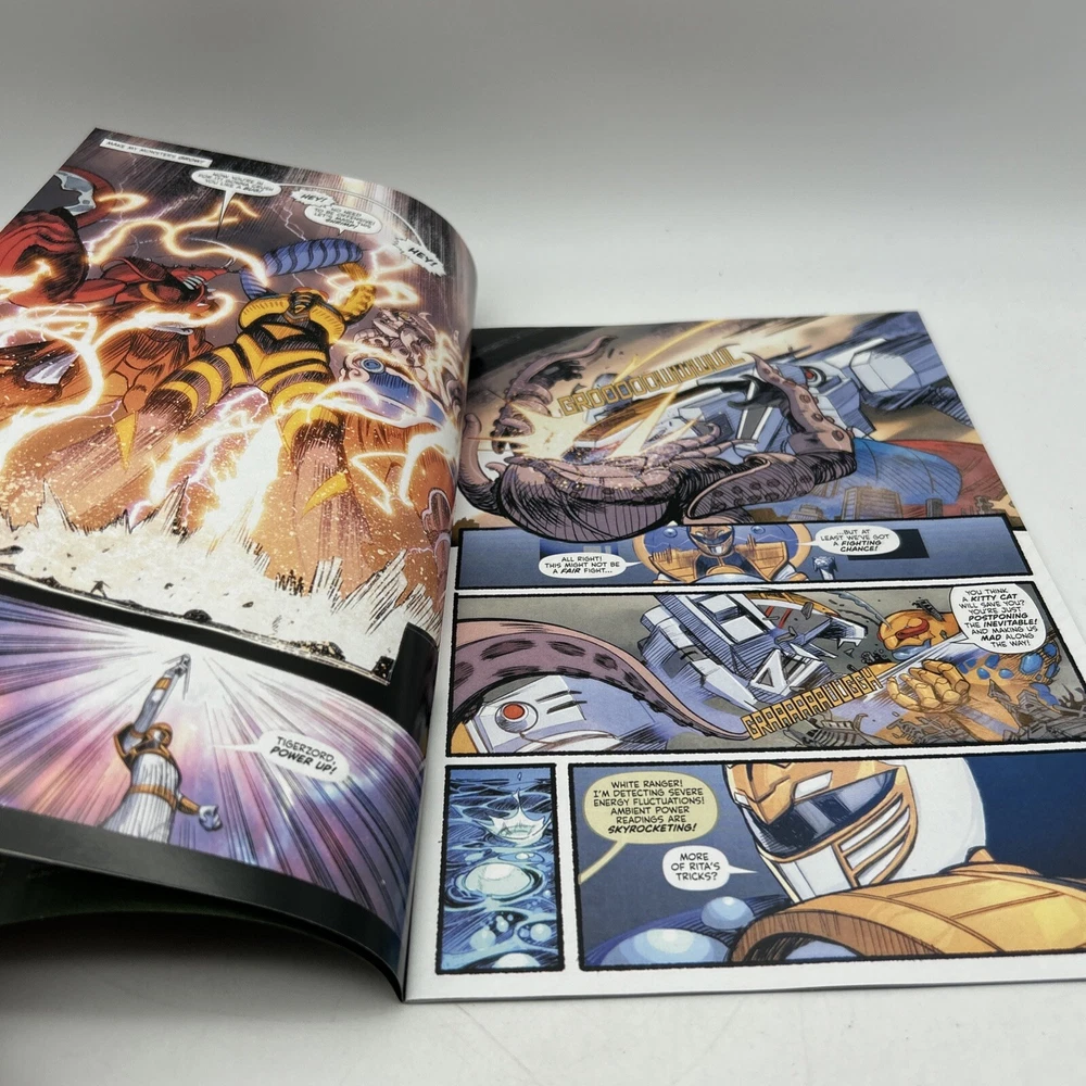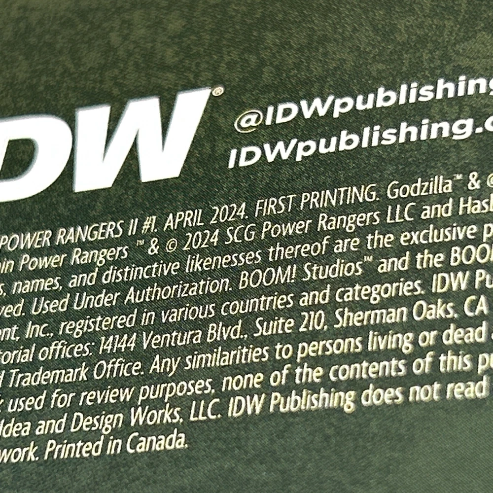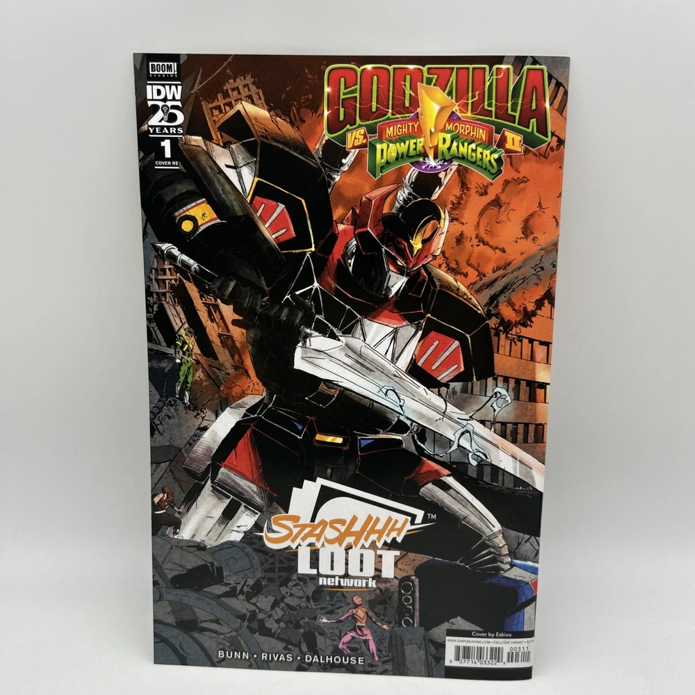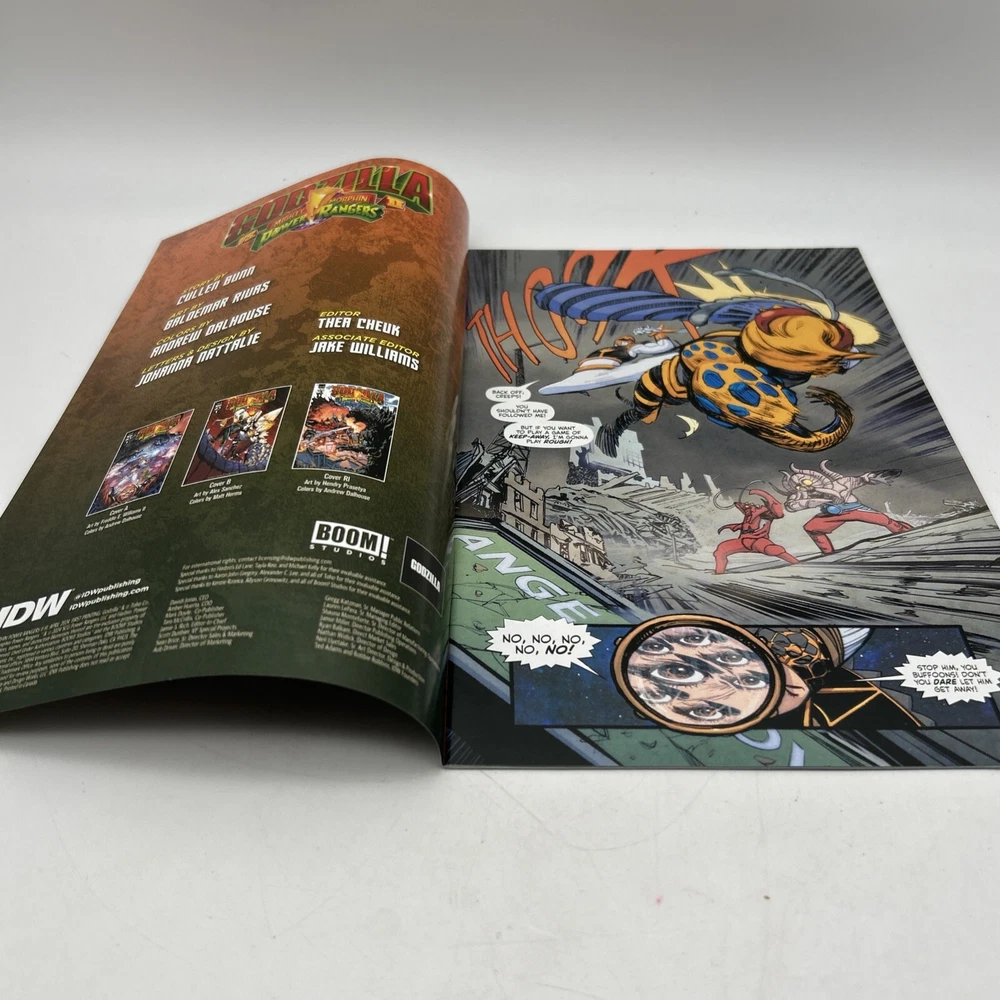 The product is a 2024 comic book titled "Godzilla VS Mighty Morphin Power Rangers #1 VIRGIN(RICH AYALA Remark Alien COA). It is a Virgin Variant featuring artwork by Rich Ayala with a Certificate of Authenticity (COA). The comic book includes characters such as Godzilla, and Power Rangers in a superhero team, set in the US Comics tradition. It is part of the series "Godzilla Vs. Mighty Morphin Power Rangers 11" and falls under genres like superheroes, action, and science fiction. Bin-9 E and P