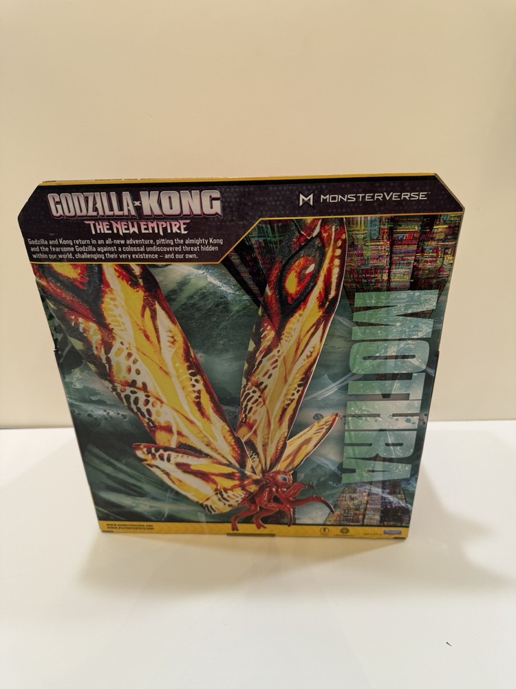 This is a brand new Godzilla X Kong Giant Mothra toy from Playmates, fresh for the year 2024. It is part of the Monsterverse collection and is a must-have for fans of the Godzilla franchise. The toy is expertly crafted and highly detailed, featuring the iconic monster in all its glory. Whether you're a collector or just looking for a fun toy to play with, this is the perfect addition to any monster toy collection. These are RARE and are very difficult to find in stores, so get yours now!