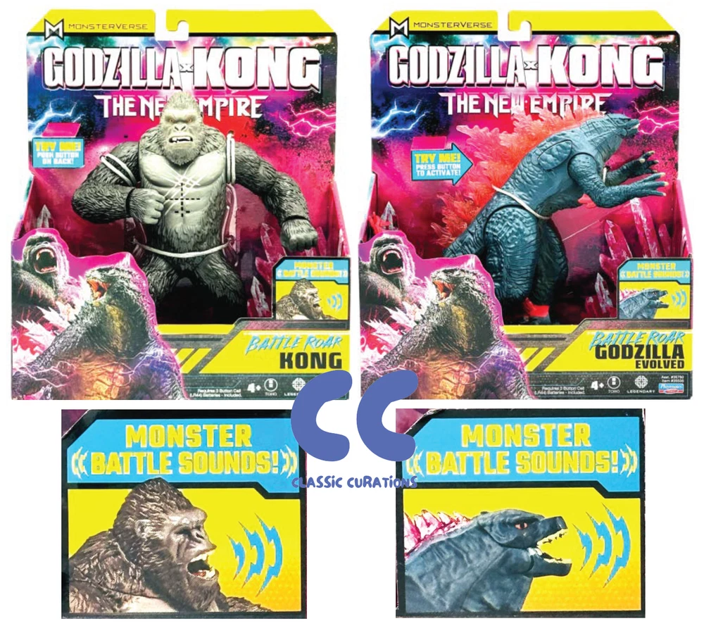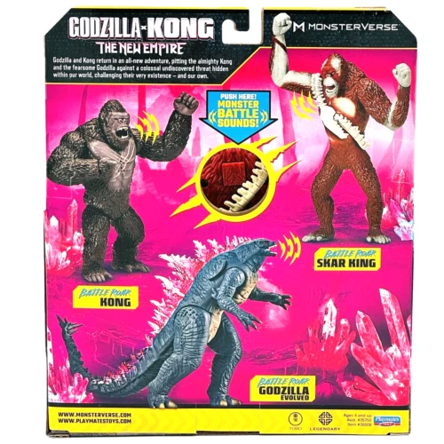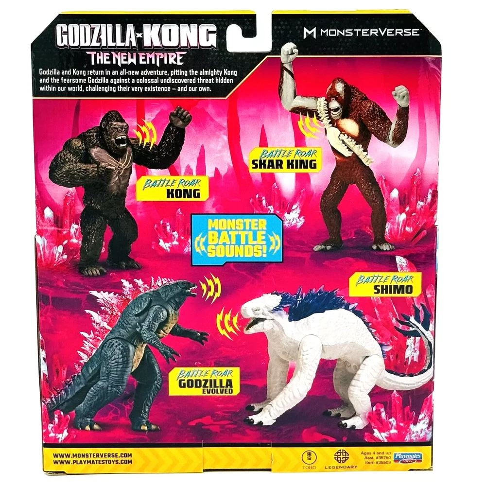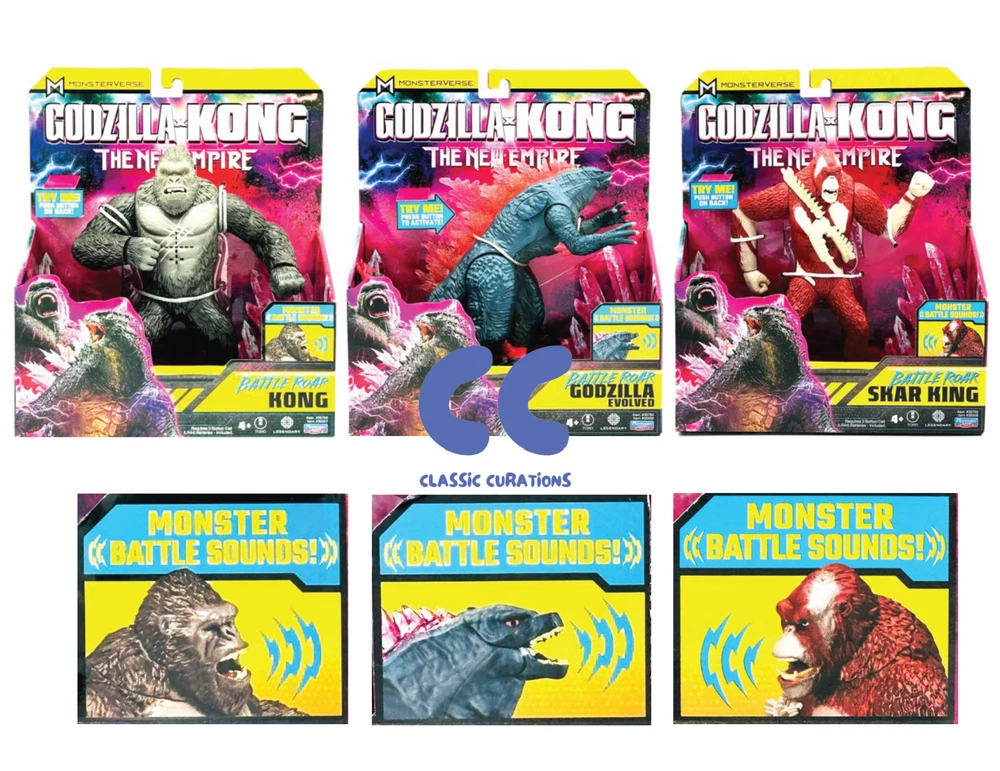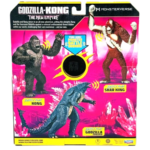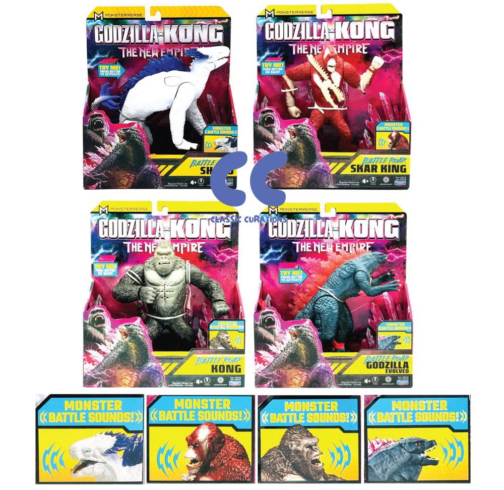 Bring the epic battle of Godzilla and Kong to life with this amazing new figure from Playmates Toys. The highly-detailed toy features Godzilla, Skar King and Kong in all their glory, roaring with battle sounds that will transport you straight into the heart of the action. Made with high-quality materials and designed with precision, this figure is a must-have for any fan of the Godzilla franchise. Don't miss out on the chance to add this incredible Godzilla figure to your collection today! Battle Roar Shimo Battle Roar Godzilla Battle Roar Kong Battle Roar Skar King Complete Set Sold as pictured. Thanks for Looking!
