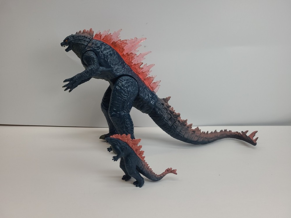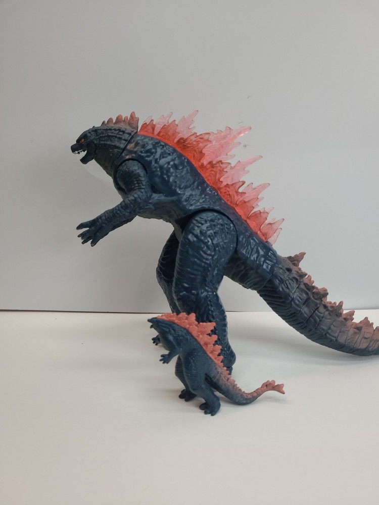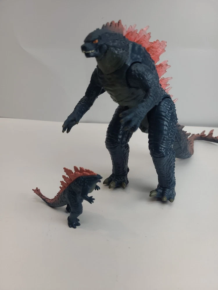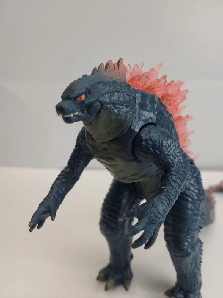 The "Godzilla X Kong The New Empire Godzilla Evolved Action Figure And Mini" is action figure of Godzilla from the Godzilla franchise. This exclusive Playmates Toys model features an evolved version of Godzilla. The listing will include the mini godzilla stands about 2"