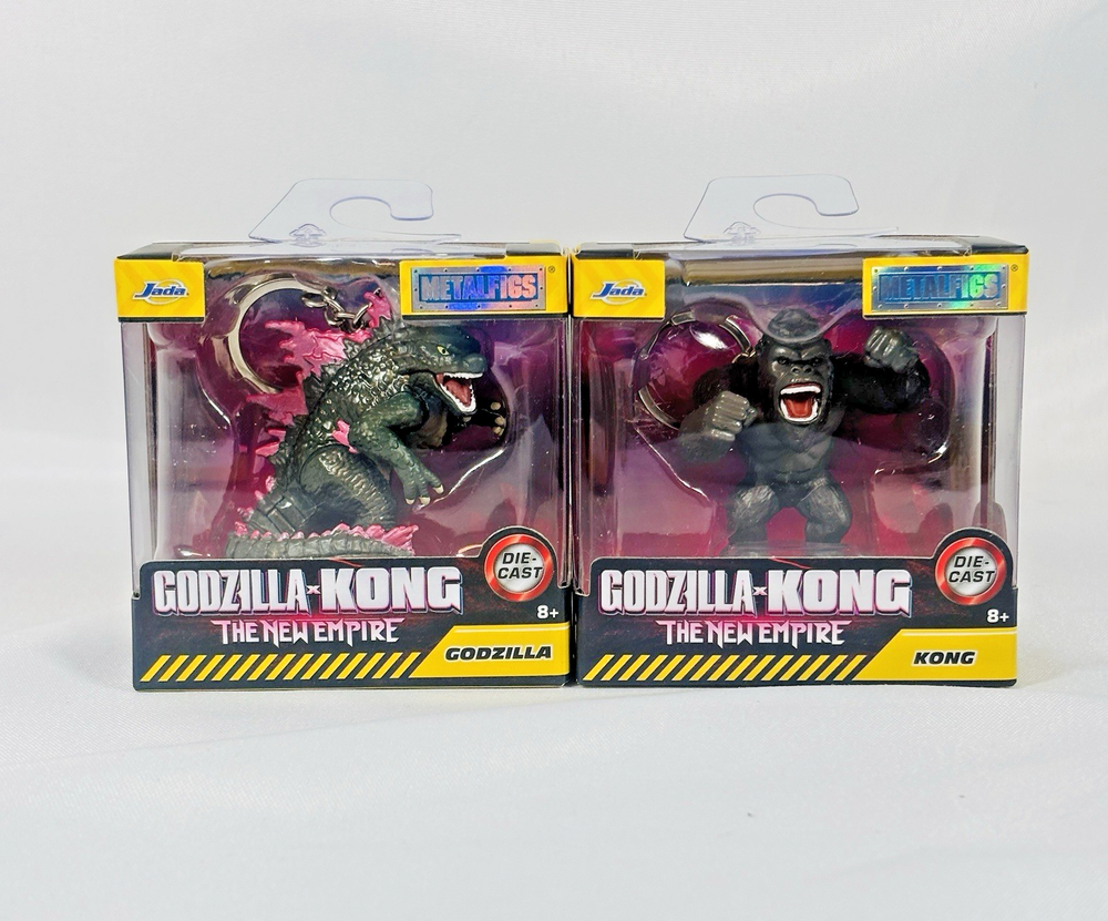 Godzilla X Kong The New Empire Metal Figs 2.5” BRAND NEW • 2 Pieces These action figures include characters like Godzilla & Kong, and are part of the Monsterverse Metal Figs series by Jada Toys. Made of die-cast material, these figures are boxed and are ideal for fans of the Godzilla X Kong TV show and movie. Perfect for collectors and enthusiasts, these figures capture the essence of the iconic characters in a unique and detailed design.