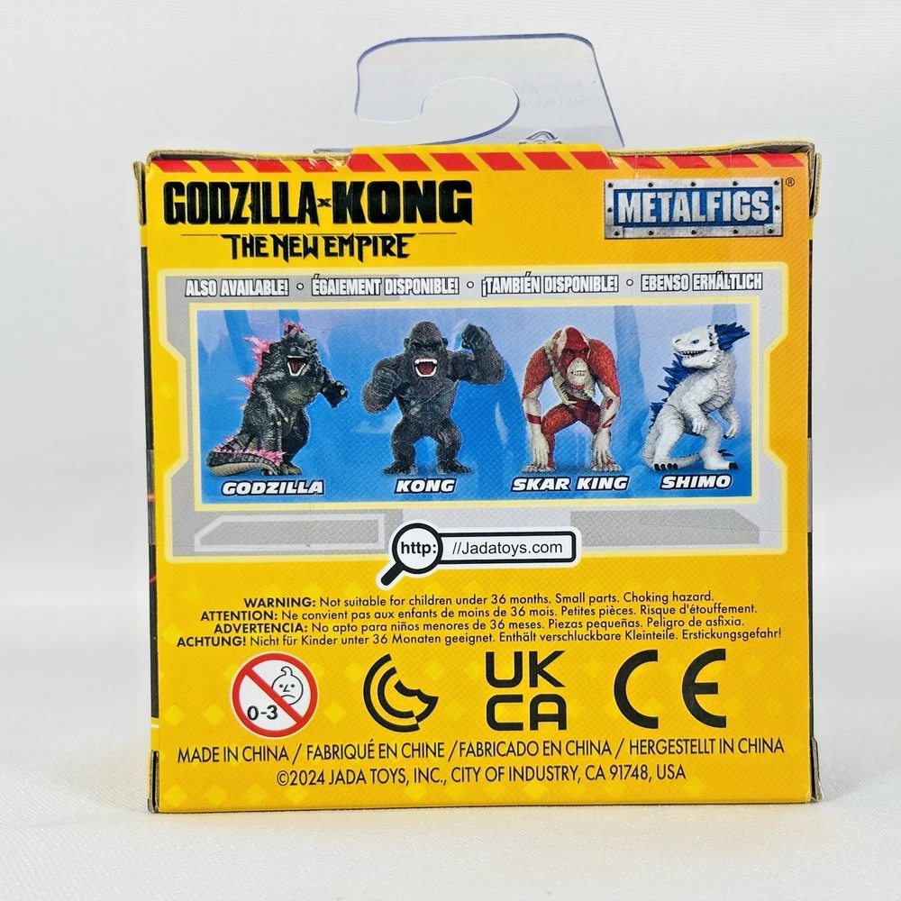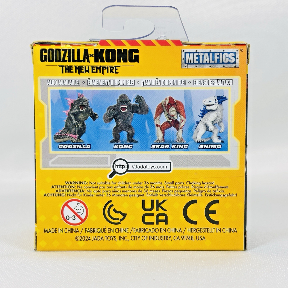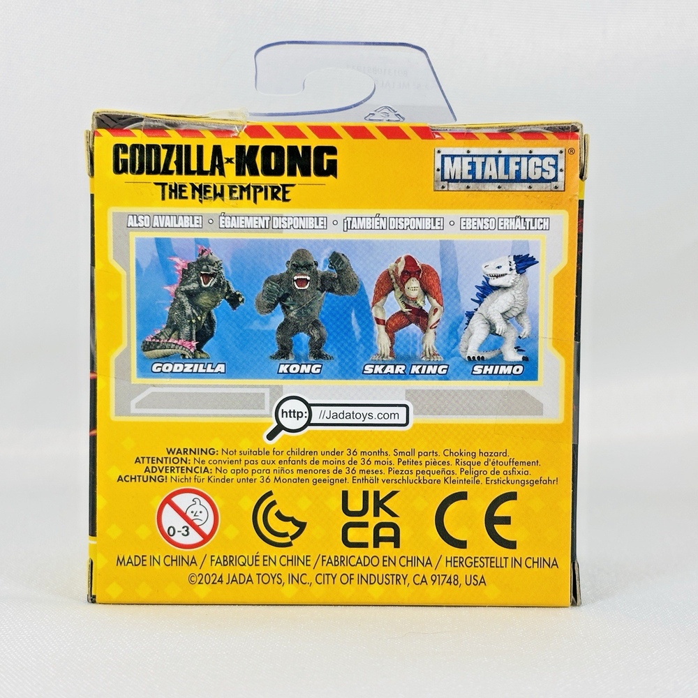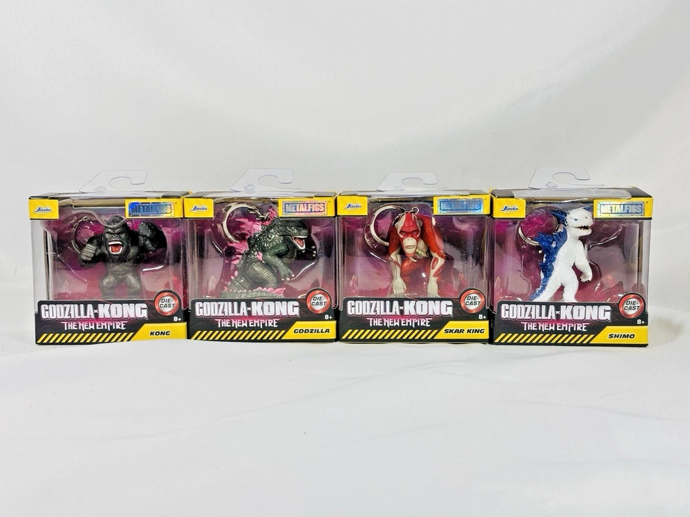 Godzilla X Kong • The New Empire • Metal Figs 2.5” • BRAND NEW • Lot Of 4 These action figures include characters like Godzilla, Kong, Shimo, and Skar King, and are part of the Monsterverse Metal Figs series by Jada Toys. Made of die-cast material, these figures are boxed and are ideal for fans of the Godzilla X Kong TV show and movie. Perfect for collectors and enthusiasts, these figures capture the essence of the iconic characters in a unique and detailed design.