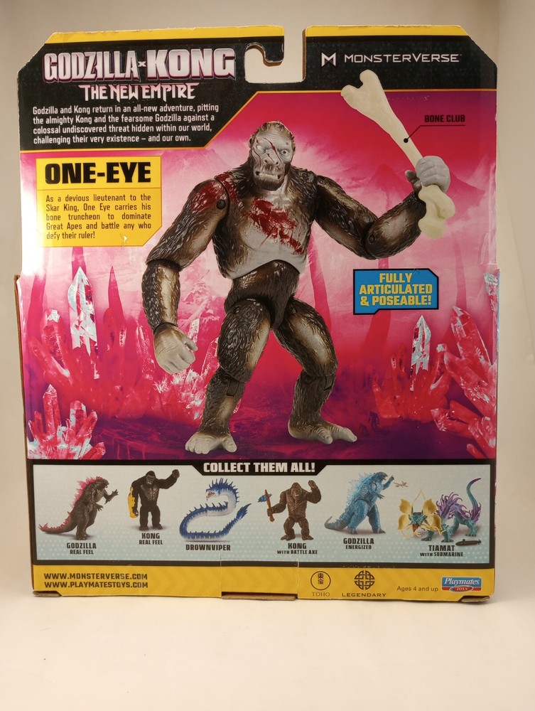 The Godzilla X Kong The New Empire One Eye Toy Figure is a 6-inch toy created by Playmates Toys, featuring a design inspired by the Monsterverse. This toy depicts a version of Godzilla with one eye, likely showcasing a unique and menacing appearance. Fans of the Godzilla franchise and monster-themed toys will enjoy adding this detailed and collectible figure to their collection.