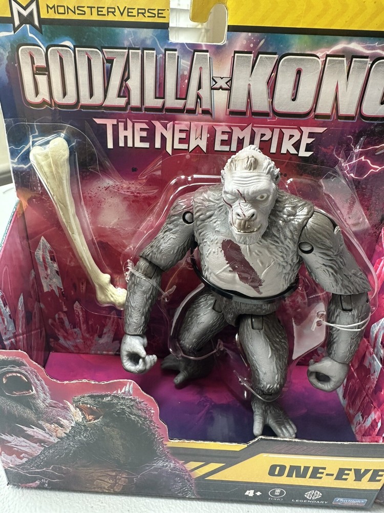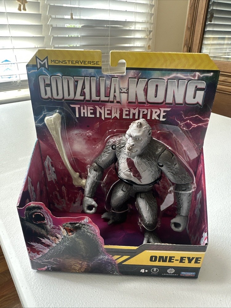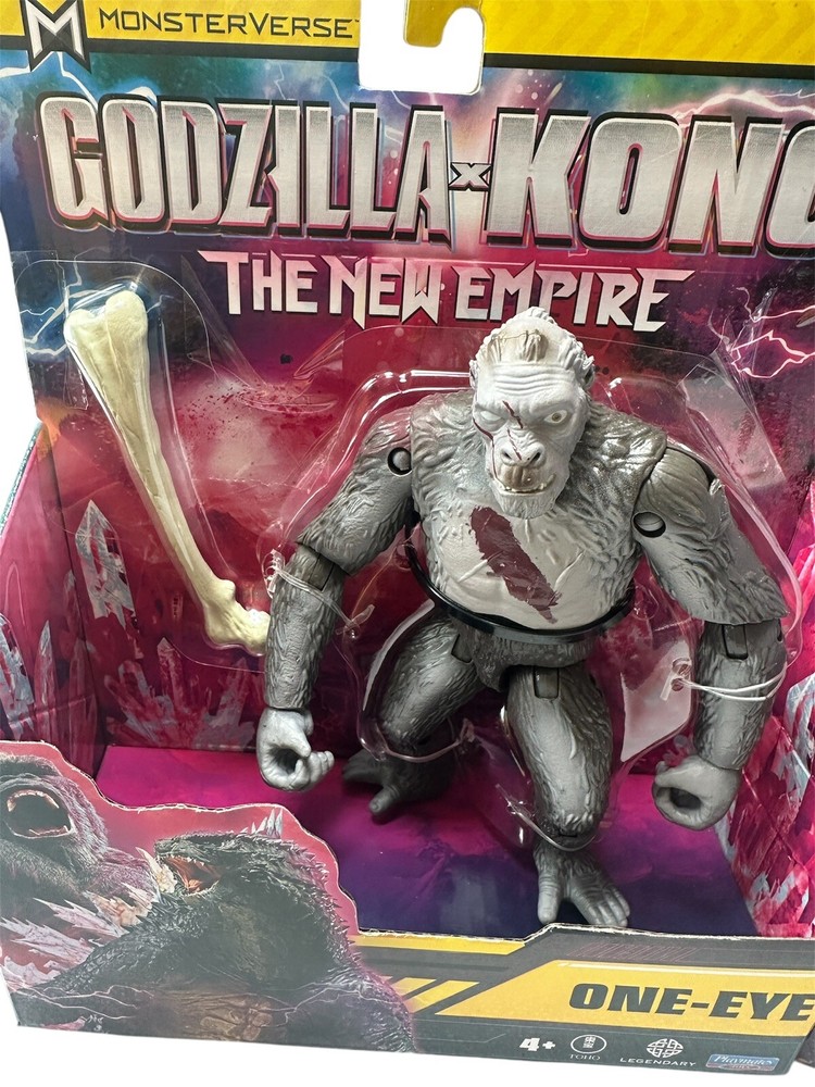 The "Godzilla X Kong The New Empire One Eye with Bone Club" action figure stands at 6 inches tall and features a character known as One Eye from the franchise "Godzilla." With a brown color scheme and a plastic material make, this 2024 release by Playmates Toys is part of the "King Kong" TV show theme. The figure comes with a bone club accessory and is recommended for ages 4 and up, staying true to the original Godzilla and Kong series while offering a new twist for collectors and fans.